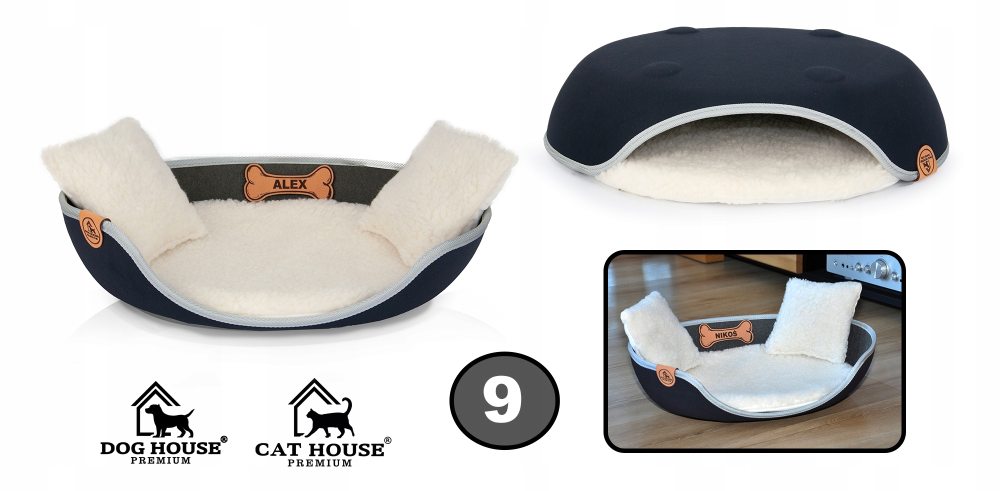 - На передній частині ліжка є нашивка з назвою виробника. Повідомте нам, якщо ваша домашня тварина собака чи кіт, тоді патч також буде у версії DOG House PREMIUM або CAT House PREMIUM