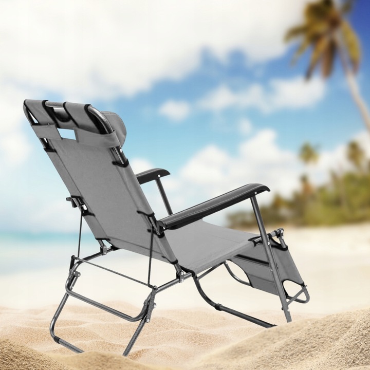 Шезлонг пропонує багато практичних функцій, які підвищать комфорт вашого відпочинку. Підголівник, прикріплений за допомогою липучки, забезпечує оптимальну підтримку шиї та голови, дозволяючи вам повністю розслабитися. Підлокітники ідеально підтримують втомлені руки, забезпечуючи комфорт під час прийняття сонячних ванн або відпочинку біля води. Крім того, складна конструкція лежака полегшує транспортування та економить місце під час зберігання.Тепер ви можете насолоджуватися не лише зручним сидінням, а й додатковими функціями, які підвищать якість вашого відпочинку.