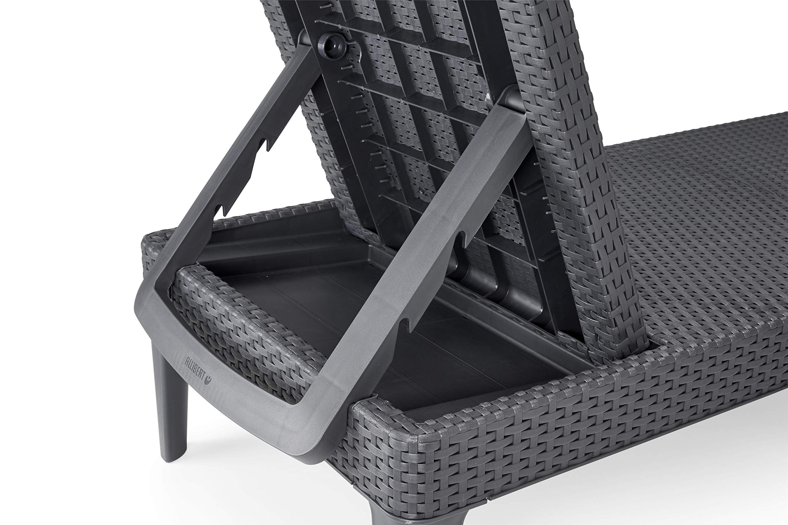 Графітові пляжні та садові лежаки Keter порадують вас своїм простим і сучасним дизайном. Структура поверхні нагадує натуральний ротанг, але з цим виробом вам не доведеться турбуватися про вітер, дощ або ультрафіолетове випромінювання.