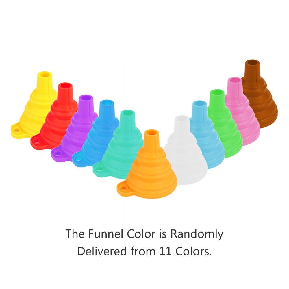 Dane techniczne: Воронка - Матеріал: силікон; Колір: випадковий Верхня ширина: 75 мм Ширина нижньої: 15 мм Висота: 100 мм Тип: Складний