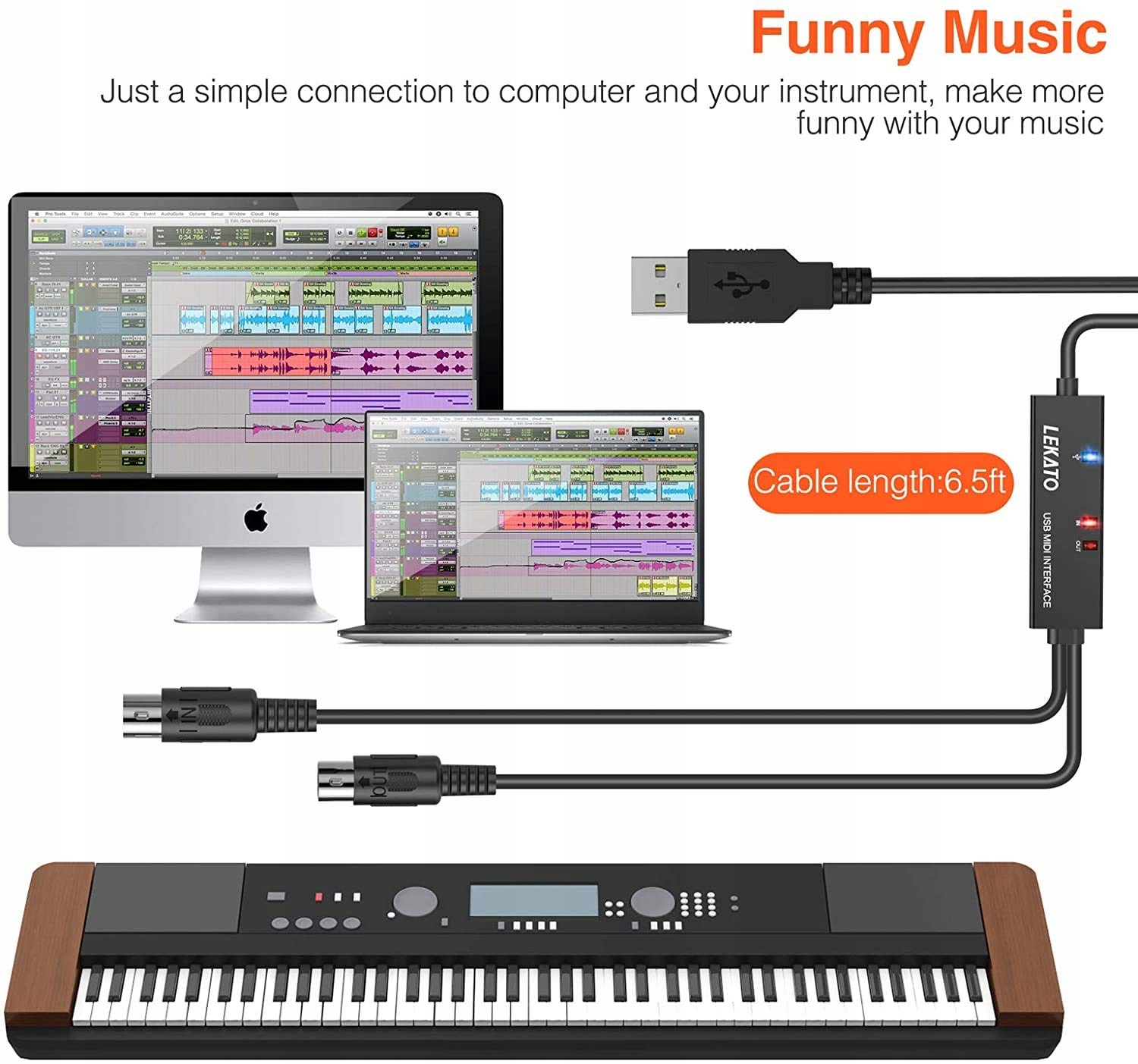 LEKATO USB MIDI КАБЕЛЬ КОНВЕРТЕР ДЛЯ ПК НОУТБУК MAC