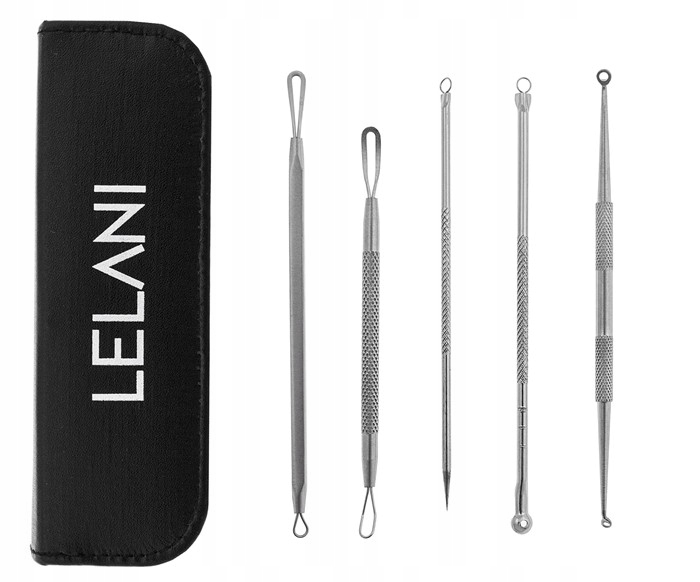 Професійний набір із 5 двосторонніх ложок Unna, в якому більші наконечники допомагають видалити прищі з білими кінчиками, а менші допомагають видалити чорні точки!
