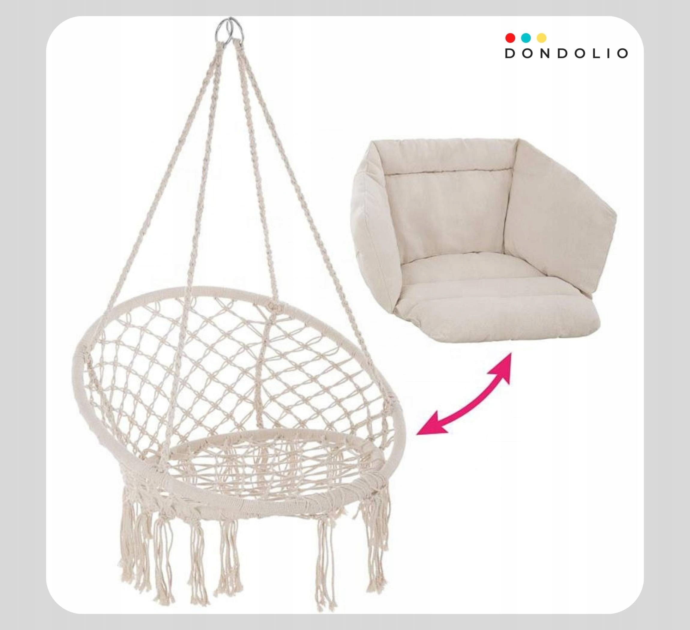 Крісло, підвісне крісло DONDOLIO в стилі бохо, з великим м'яким сидінням