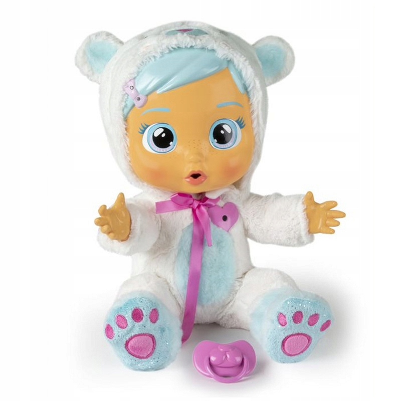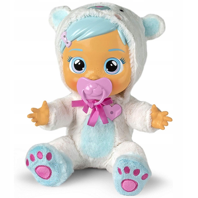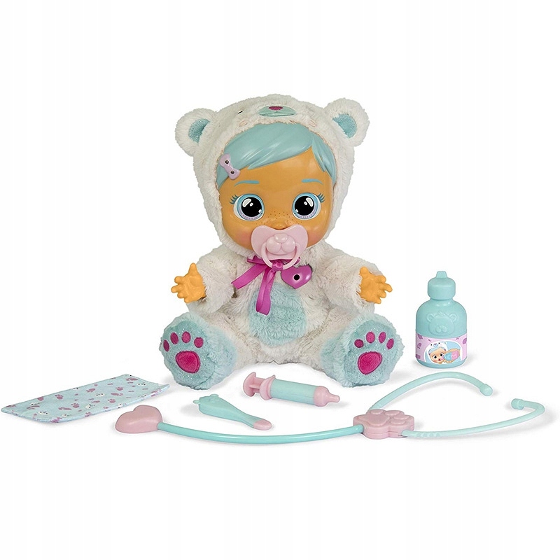 Крістал хвора! Чи можете ви доглядати за нею? Якщо у неї з’явився кашель, дайте їй ліки, які допоможуть їй зупинити кашель. Якщо у неї піднялася температура, потрібно накрити її чоло мокрою тканиною, щоб охолодити її. Коли на її обличчі з'являться червоні плями, зробіть їй укол, щоб вони зникли! Як і всі Cry Babies, Kristal також плаче справжніми сльозами, коли ви дістанете її пустушку, вона видасть реалістичні дитячі звуки.
