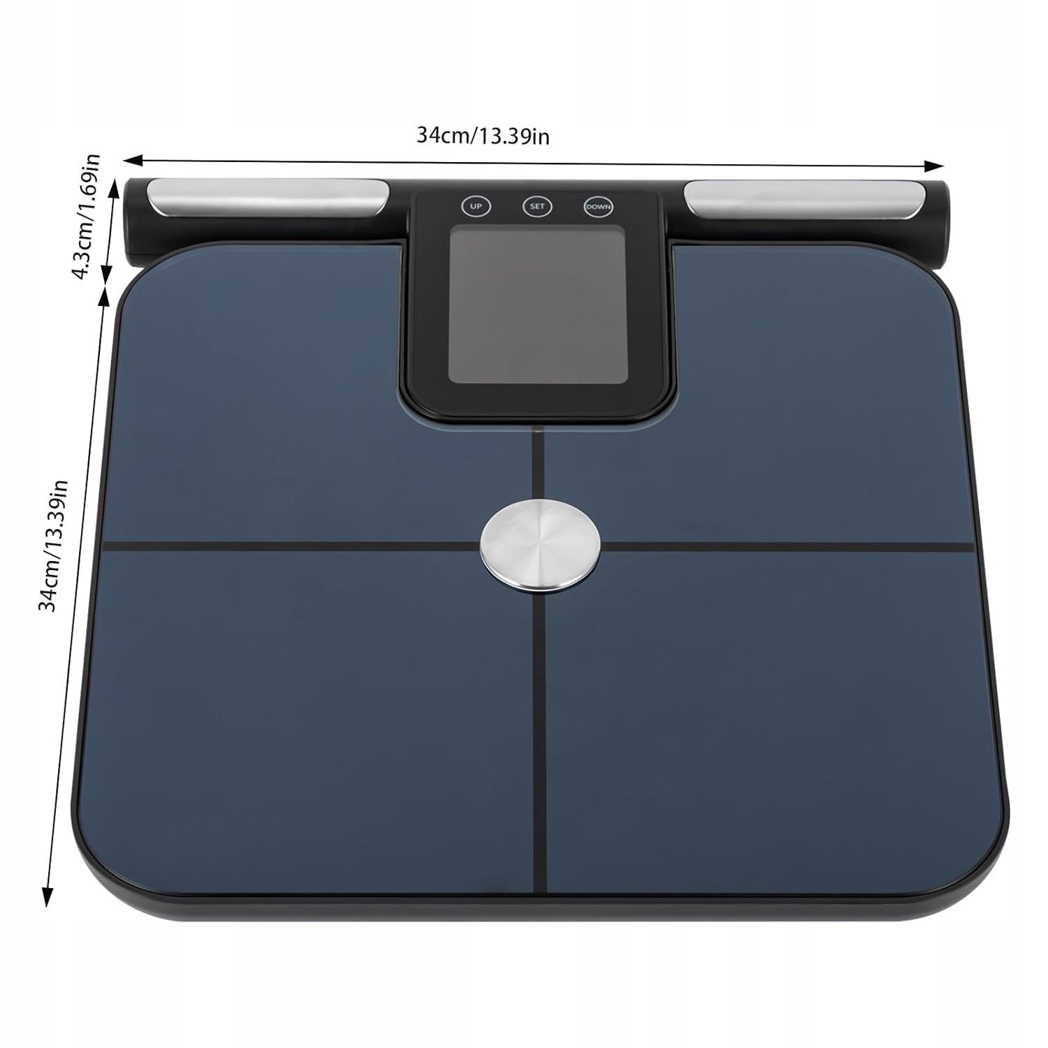 ШИРОКА СУМІСНІСТЬ ТА ЗАСТОСУВАННЯ: Мінімальна вага 11,02 фунтів дозволяє широко застосовуватися, підходить для вимірювання великих домашніх тварин, більшості фруктів у картонних коробках тощо. Він широко використовується в будинках, школах, клубах, спортзалах, готелях, торгових центрах, офісах, ресторанах, салонах краси. салони тощо для відображення таких значень, як вага, ІМТ, відсоток жиру в організмі, гідратація, м’язова маса, кісткова маса, вік і тип фігури.