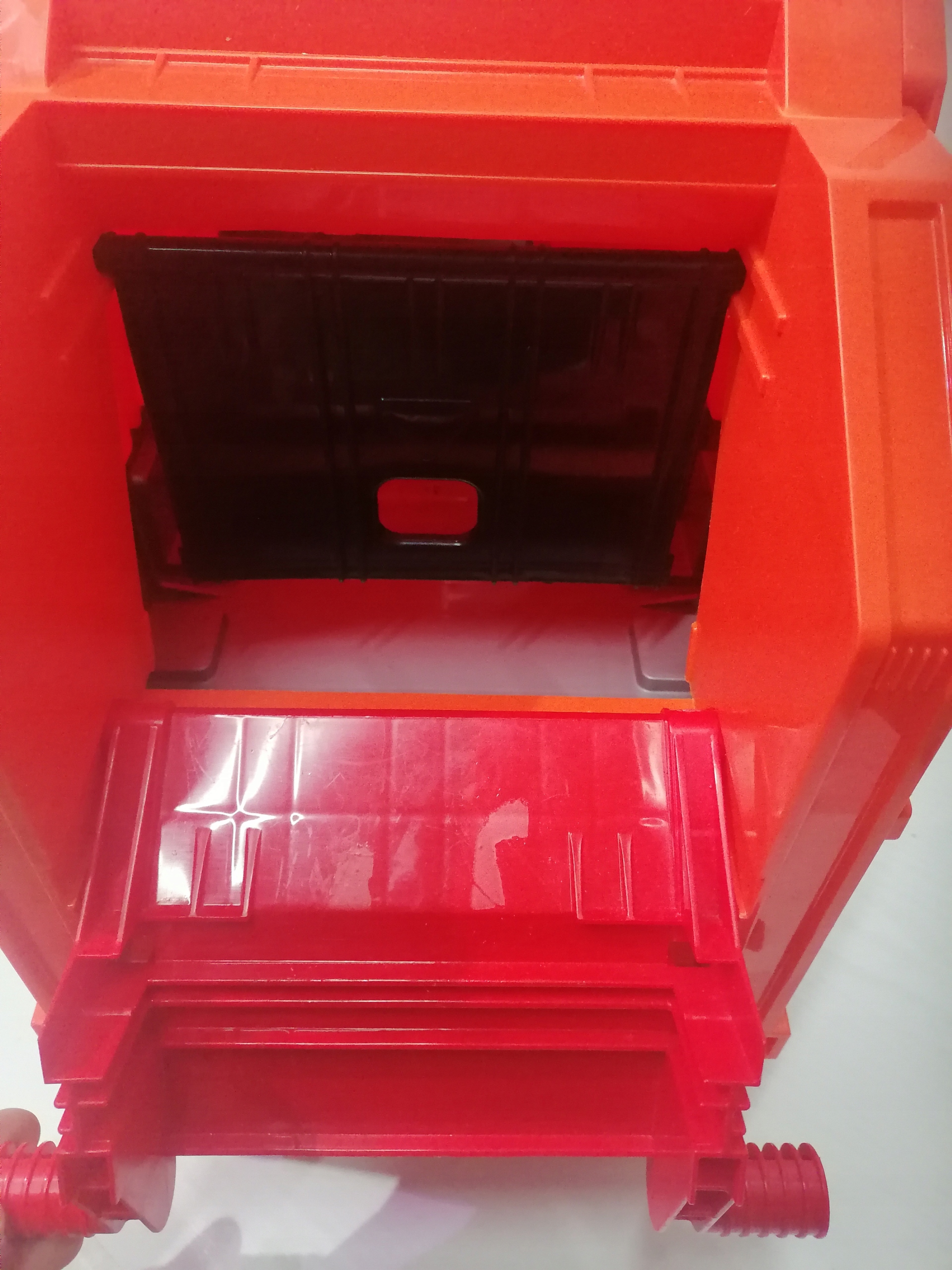 Мерседес Garbage Truck супер сміттєвоз модель ACTROS двовісний помаранчевий з сріблястою фурнітурою. Виготовлений з якісного пластику, відповідає європейським стандартам. Сміттєвоз оснащений двома перекидними механізмами для викидання сміття. Ця машина дуже функціональна і цікава. Максимальне навантаження сміттєвоза 100 кг, тому на ньому може сидіти дитина. Довжина автомобіля 72 см.