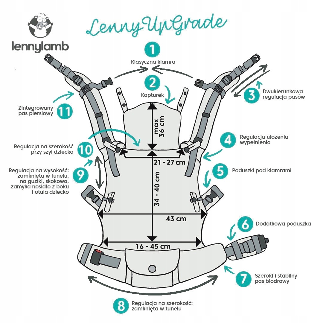 - Можливість носити дитину на передній частині та на задній частині , що дає дитині можливість спостерігати за світом з нашої точки зору, а також більший комфорт для батьків. 4 Вони могли відрегулювати його до розміру нашої дитини, панель росте разом з нашим малюком від розміру 68 до 98 залежно від довжини стегна дитини. Немовлята є універсальним, він буде добре навіть для нашого 2 -річного -олда. Панель може досягти максимуму половини стегна, потім нога дитини починає звиснути, не надаючи їй повної підтримки. Lennyllab Lennypgrade також має коригування на шиї дитини.