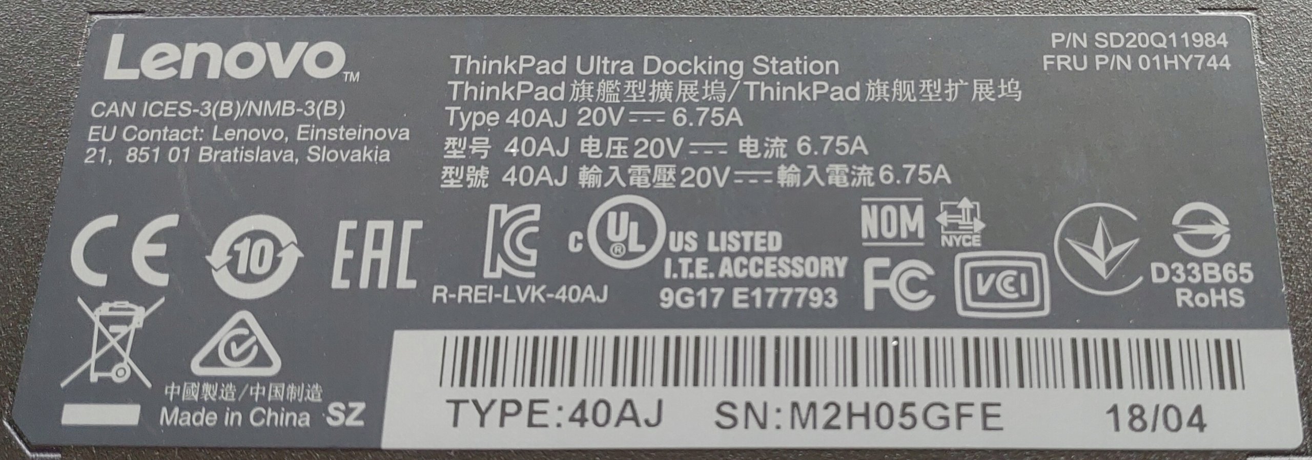 Lenovo ThinkPad Ultra Dock 40AJ + станція 135 Вт