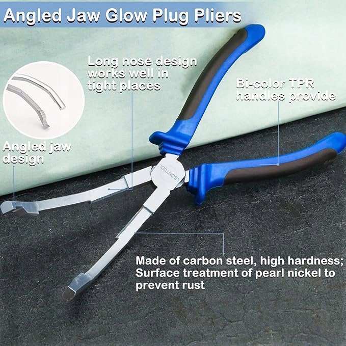 - Застосування: інструмент для зняття роз’єму свічки розжарювання є спеціально розробленою заміною для дизельних двигунів. Кутовий призначений для видалення роз’ємів свічок розжарювання у важкодоступних місцях.
