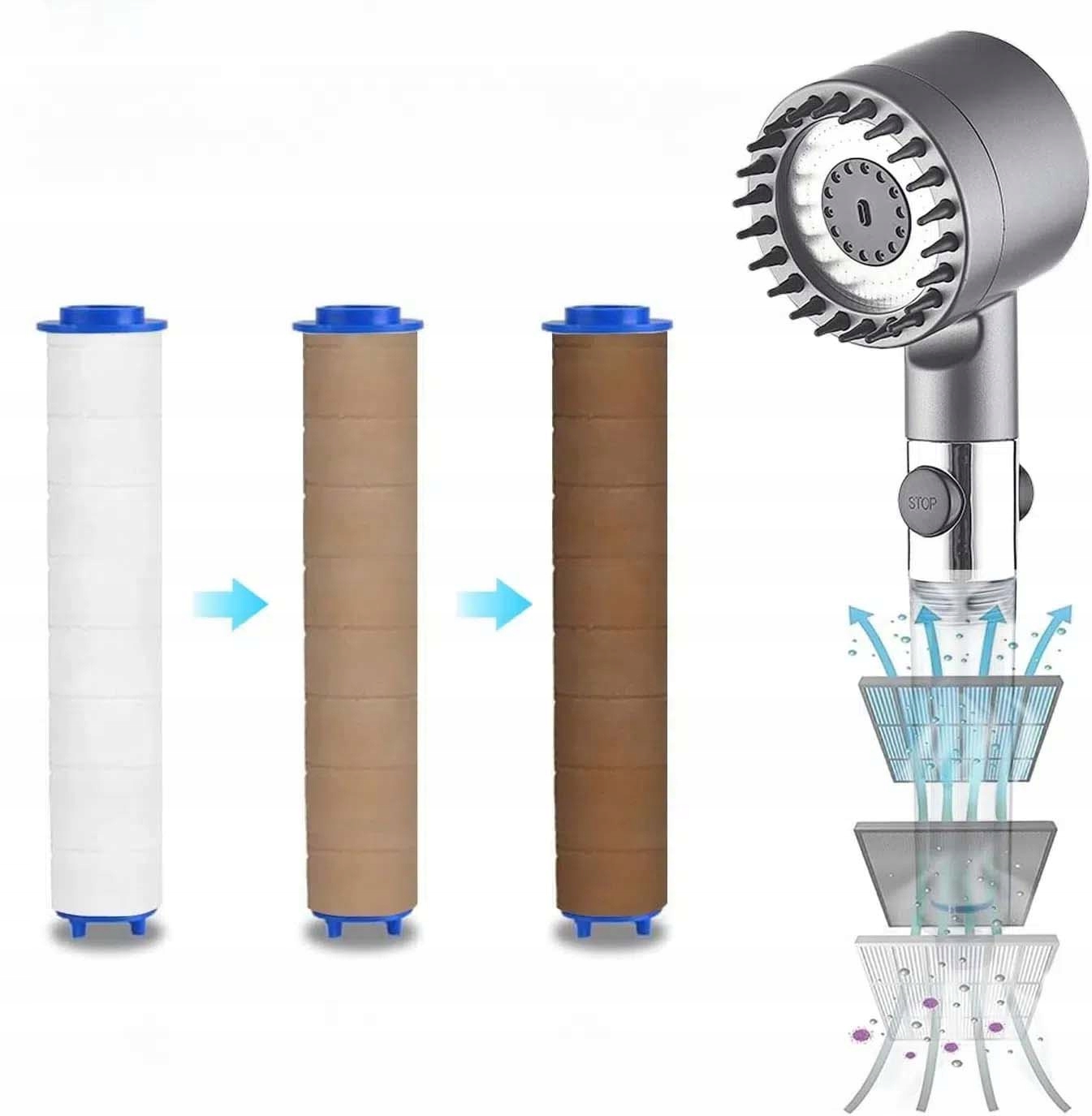 душова головка оснащена м'якою силіконовою щіткою , яка масажує шкіру голови, підтримує циркуляцію крові, заспокоює втому голови та головний біль і підтримує ріст волосся, задоволення на рівні SPA , дозволяє робити ванну. Силіконовий масажний елемент ідеально підходить не тільки для масажу шкіри голови, але і для масажу інших частин тіла.