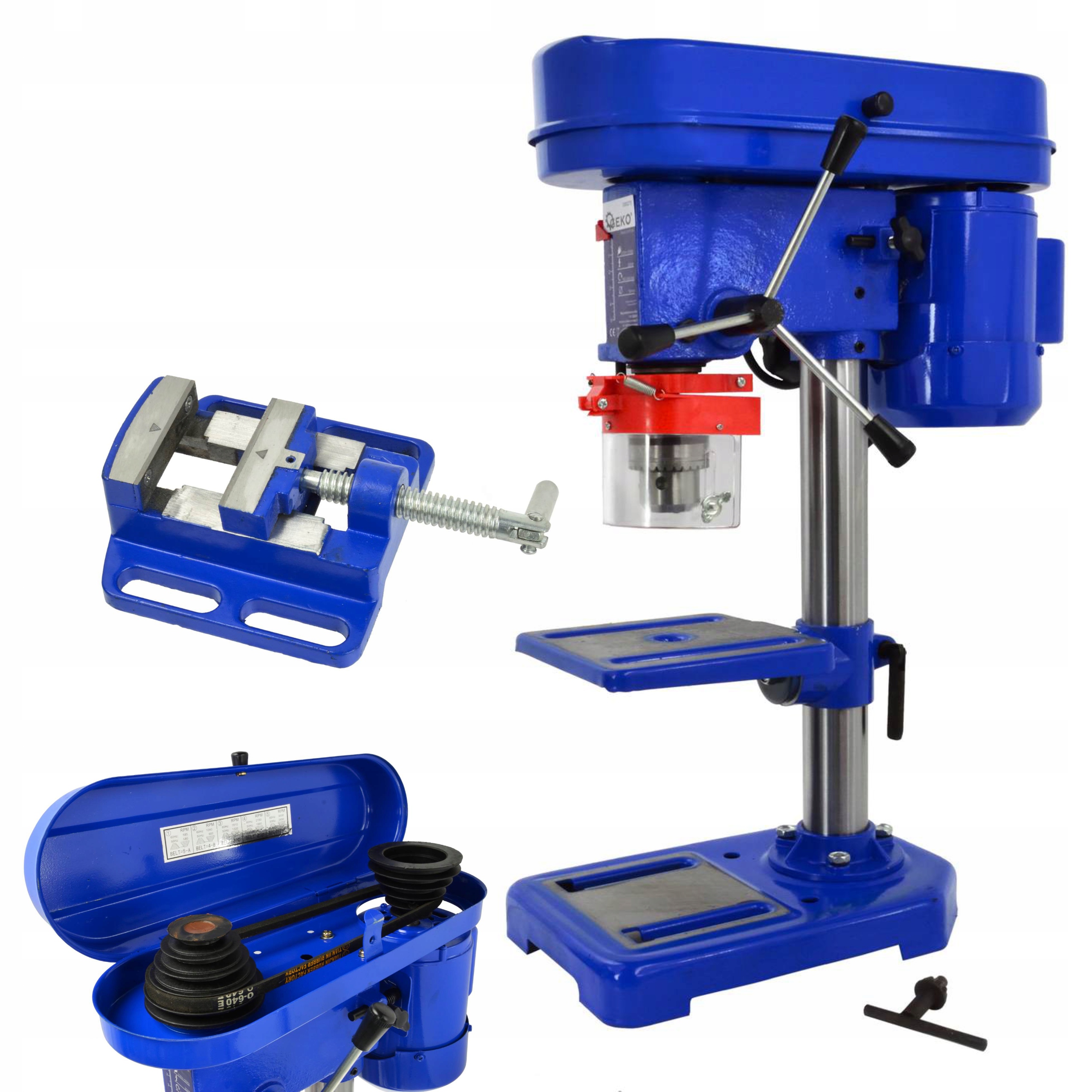 Колонний настільний дриль з електродвигуном 250 Вт. Привід клиновим ременем, з 5-ступінчастим регулюванням швидкості. Робочий стіл регулюється по висоті та куту, максимум 45° вправо та вліво. Дриль підтримує свердла з максимальним діаметром не більше 16 мм.