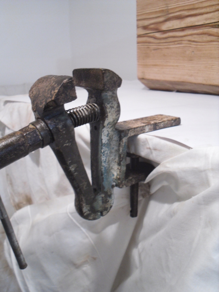 Ласкаво просимо на мій аукціон. На аукціонах я зазвичай пропоную вам речі часів Польської Народної Республіки. На даному аукціоні пропоную ОРИГІНАЛЬНІ старі лещата, лещата, столярний зажим. Лещата в дуже хорошому стані, все працює, очищені та захищені від корозії. Лещата були доопрацьовані шляхом приварювання ручки для кріплення до стільниці. Залишки фарби. Немає ручки для прикручування до стільниці. Губки гарні і добре стикуються, але при натисканні до упору їх важко роз'єднати, потрібна допомога, наприклад викруткою, пухкі при закручуванні на щілину близько 0,5 см відкручуються і провертаються без. будь-які проблеми. Пружина розсуває щелепи на ширину приблизно 3,2 см. До КОЛЕКЦІЇ. Дивіться фото.