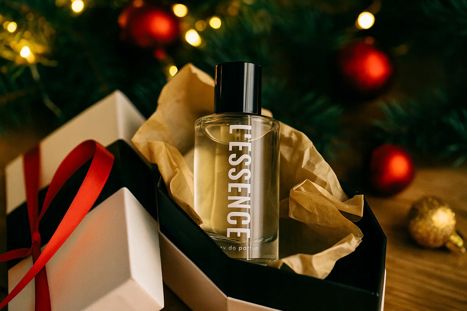 Пляшка L'essence — це сучасний мінімалізм із класом — масивне скло, виразний позолочений логотип, елегантна чорна рамка з геометричним акцентом. У набір також входить відповідний подарунковий пакет - готовий до дарування без додаткової упаковки. Це ідеальний подарунок для чоловіка, який знає, чого хоче, і завжди прагне більшого.