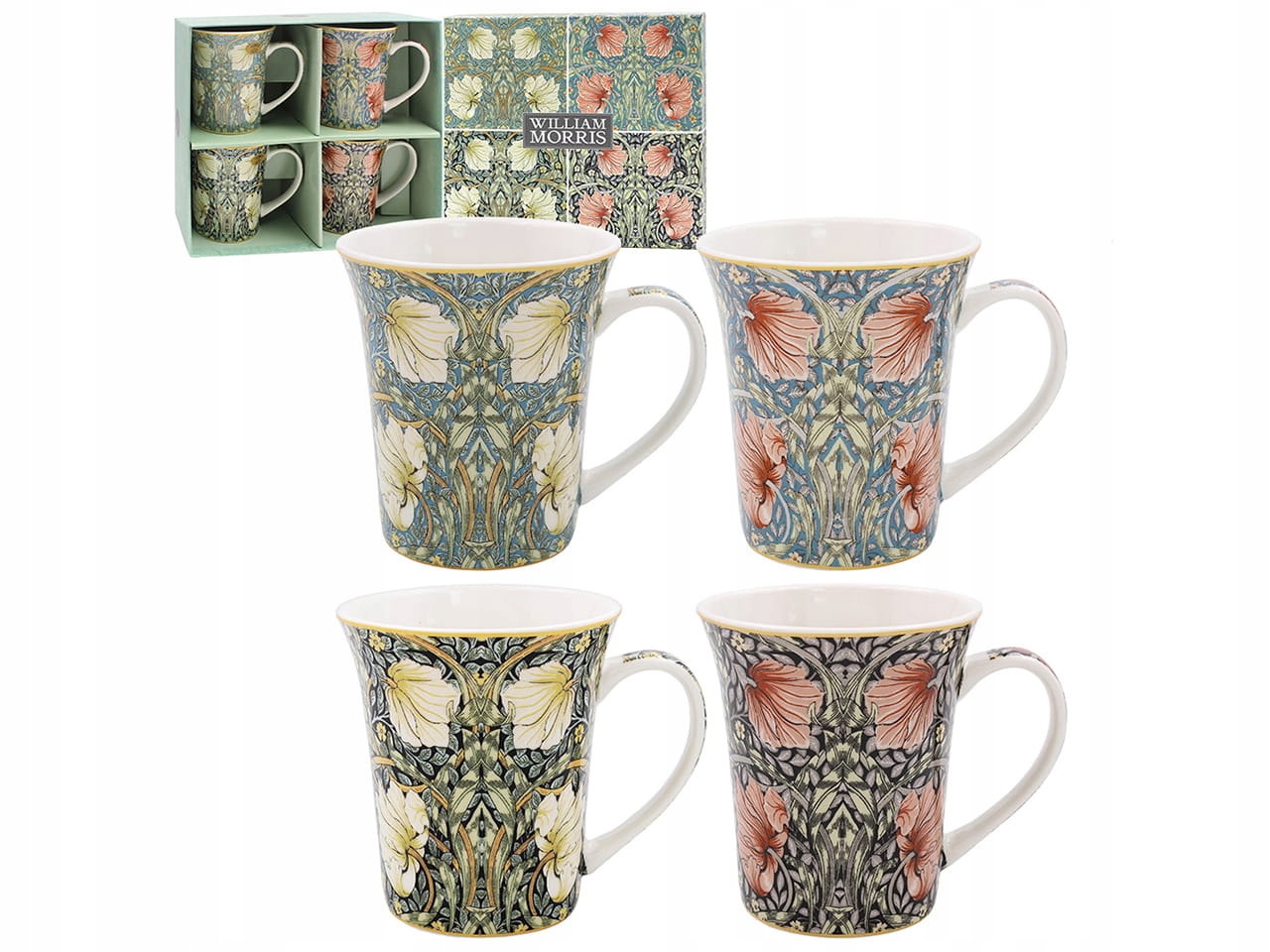 Набір із чотирьох порцелянових кухлів у формі тюльпана, що розширюються догори Lesser & Pavey/Leonardo Coll. - William Morris/Pimpernelз гарним кольоровим мотивом на основі візерунка/мотиву тканини з вищезгаданою назвою