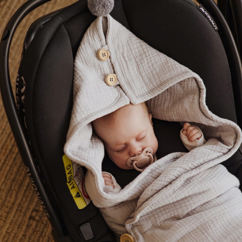 Літній мусліновий плед/ковдра є надзвичайно універсальним — ідеально підходить не лише для автомобільного крісла, але й для коляски чи дитячої люльки. Його універсальний розмір забезпечує ідеальне прилягання до сидінь із 3- та 5-точковими ременями безпеки.