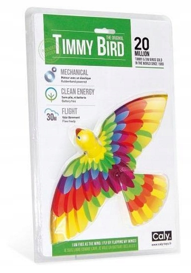 Я літаю на відстані 50 м протягом 50 років і зачаровував дітей у всьому світі. Я вільний, як вітер! Я літаю з крилами! Цей дивовижний птах працює від системи гумової обмотки - акумулятори не потрібні. Обертаючи кривошип 50 разів, діти згортають еластичну смугу, яка кладе в руху, стійкий до розриву крила. Просте регулювання хвоста забезпечує нескінченний політ та експериментальні варіанти. Потім натисніть маленьку кнопку під правим крилом і дайте птаху вгору, щоб вона могла відлетіти. Чудова забава для всієї родини!