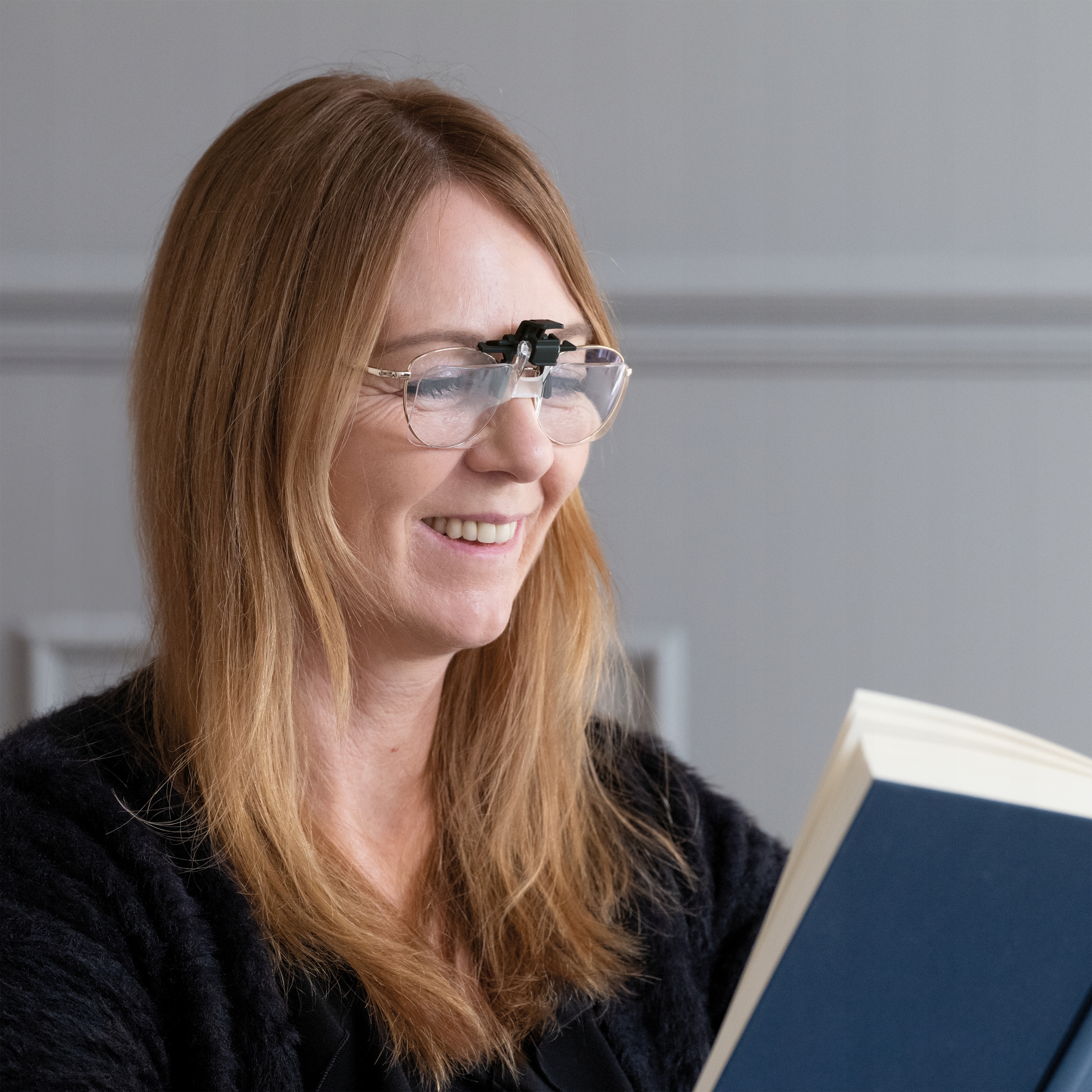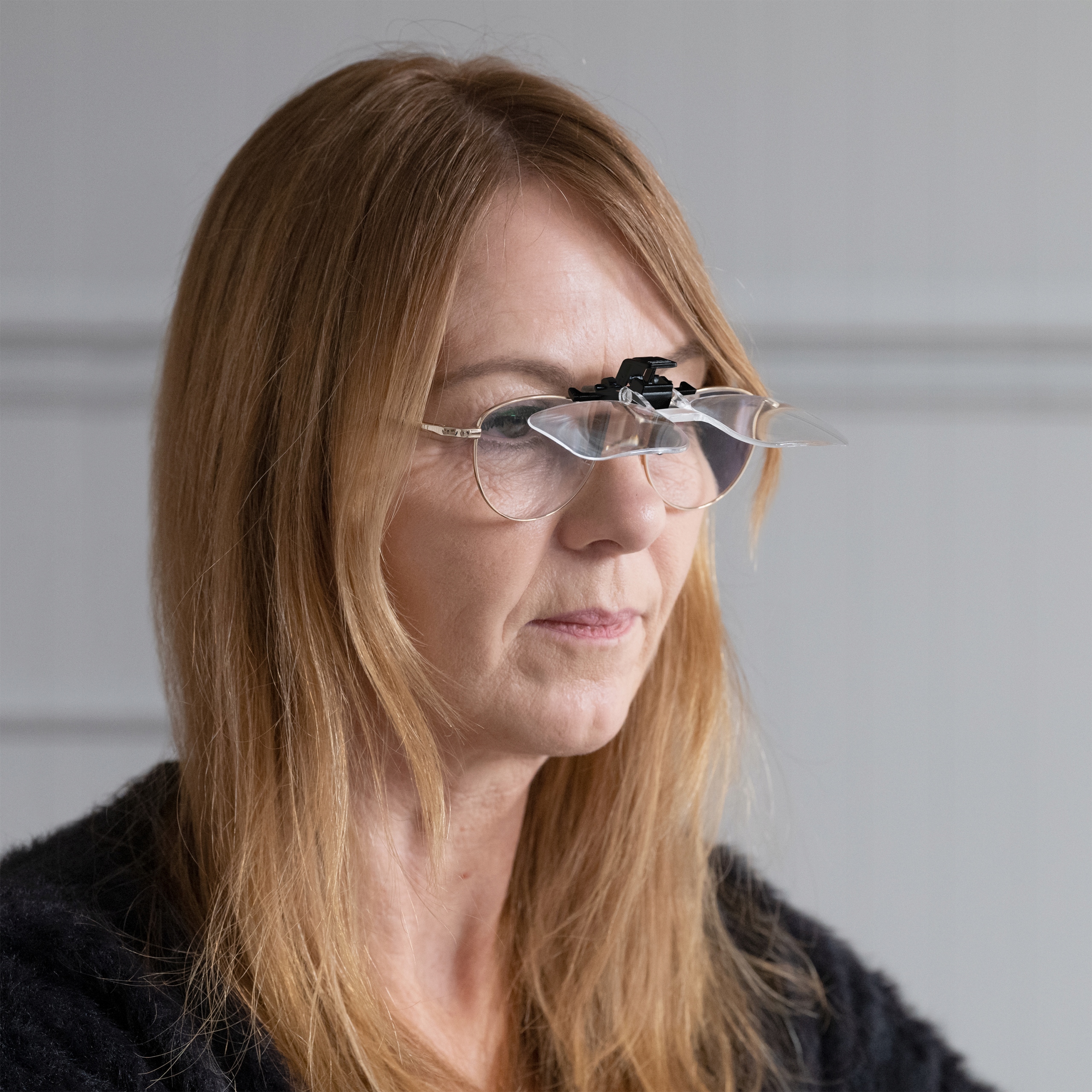 Лупа для окулярів CLIP дозволяє працювати руками, тобто легше в’язати, майструвати чи шити.
