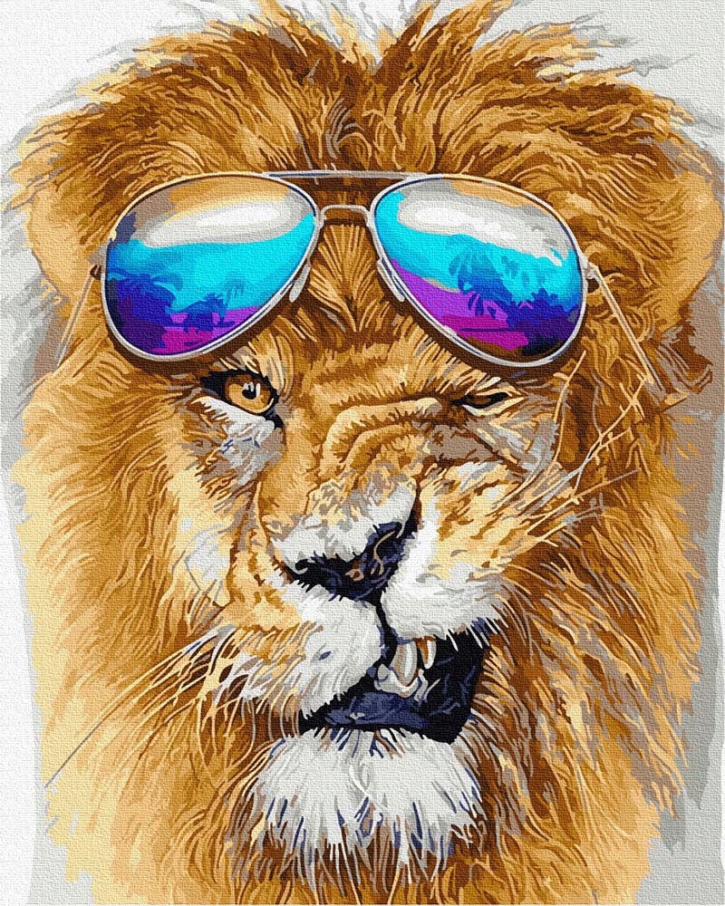 Набір для малювання за номерами Лев в окулярах Картина за номерами 50х40см на дерев'яному підрамнику