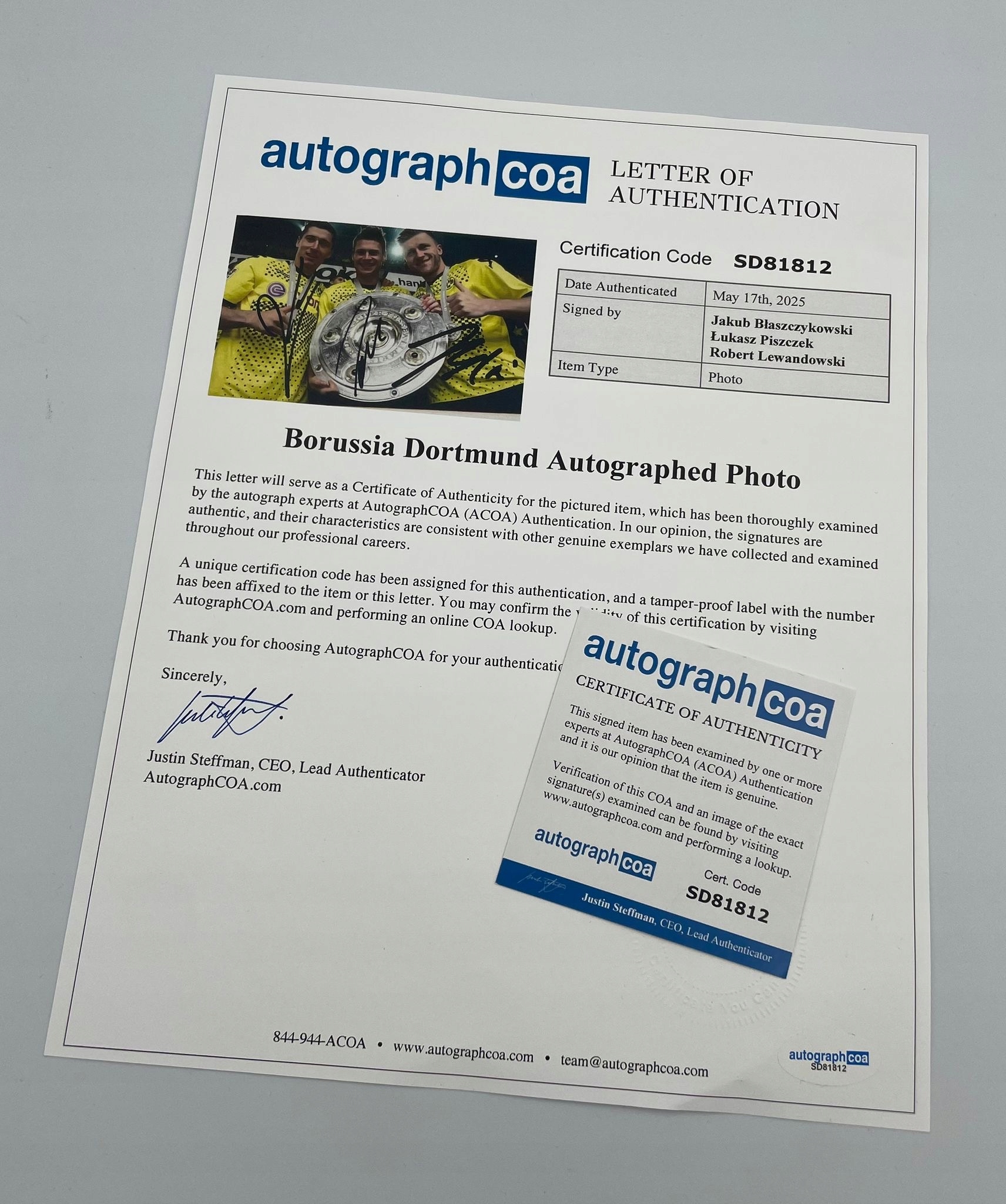 Медаль прикрашена оригінальними автографами цих трьох легенд польського футболу, які разом увійшли золотом в історію футболу. Кожен підпис підтверджено - до комплекту додається сертифікат справжності підписів, що гарантує надійність і безпеку покупки.