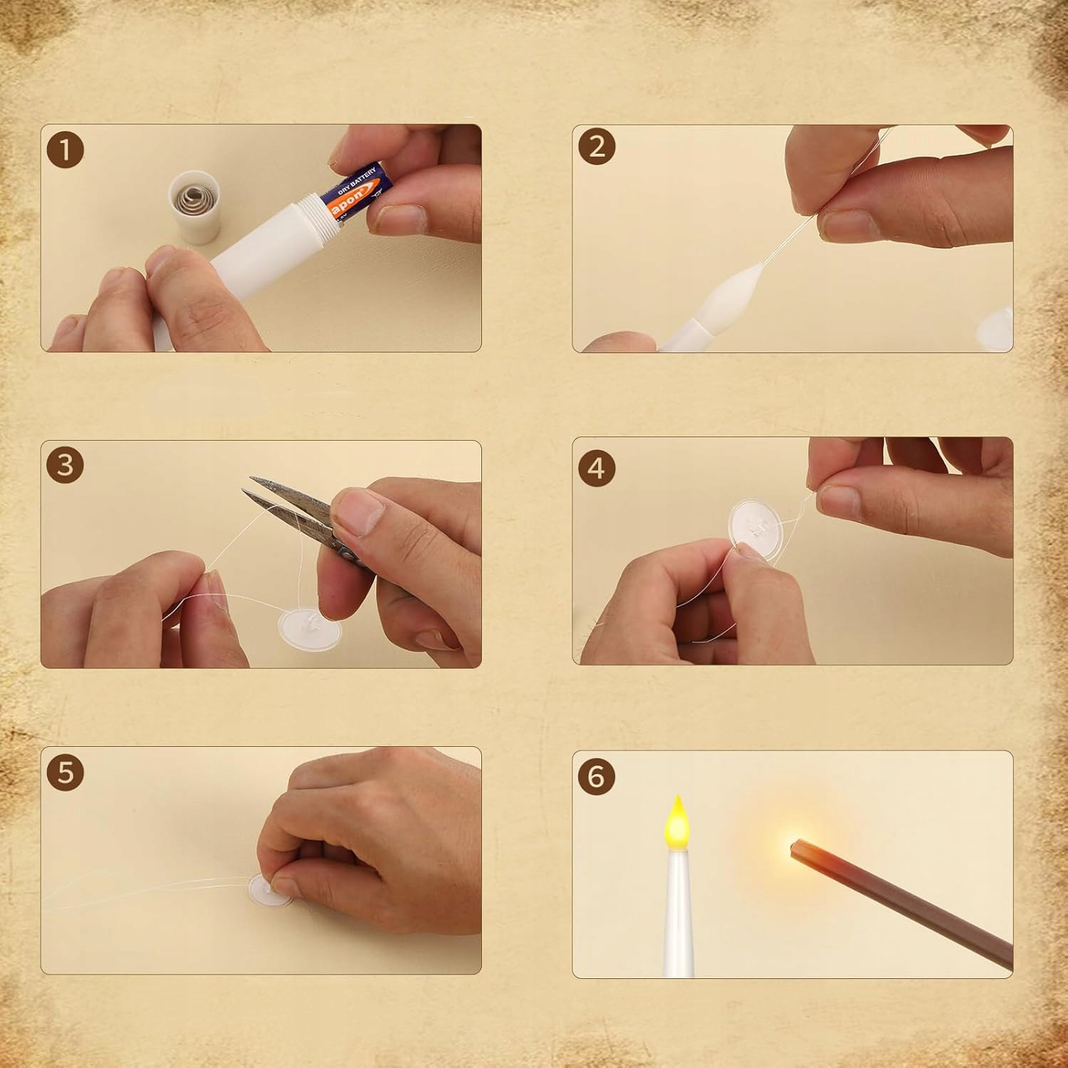 🕯️Практикуйте свою паличку -На відміну від інших свічок, керованих паличками, наші палички дозволяють практикувати свої магічні навички. Магія цієї плаваючої свічки полягає в тому, що ви повинні практикувати свої навички чарівної палички, щоб відкрити більше свічок. Це цікавий спосіб для дітей використовувати свою уяву та практикувати навички чарівної палички, змагаючись за наймогутнішого чарівника.