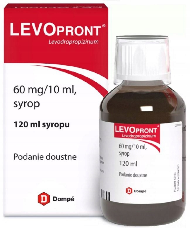 Левопронт — лікарський засіб для застосування при сухому (непродуктивному) кашлі різного походження, наприклад, пов’язаному з інфекційними захворюваннями. Сироп має протикашльові властивості і додатково знімає бронхоспазм. Призначений для дітей від двох років і дорослих.