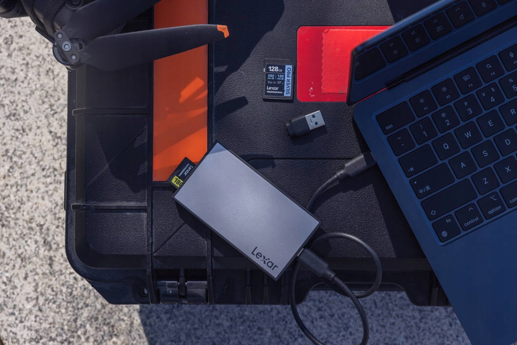 Lexar Professional Workflow USB 3.2 Gen2 Reader - це сучасний зчитувач карт пам'яті, розроблений для професійних фотографів та режисерів. Оснащений двома розетками, що підтримують картки SD ™ та MicroSD ™ UHS-II, пропонує швидку швидкість передачі даних, що значно покращує роботу в студії та в цій галузі. Завдяки підтримці USB 3.2 Gen 2 та корпусу алюмінію, він довговічний, компактний і простий у використанні.