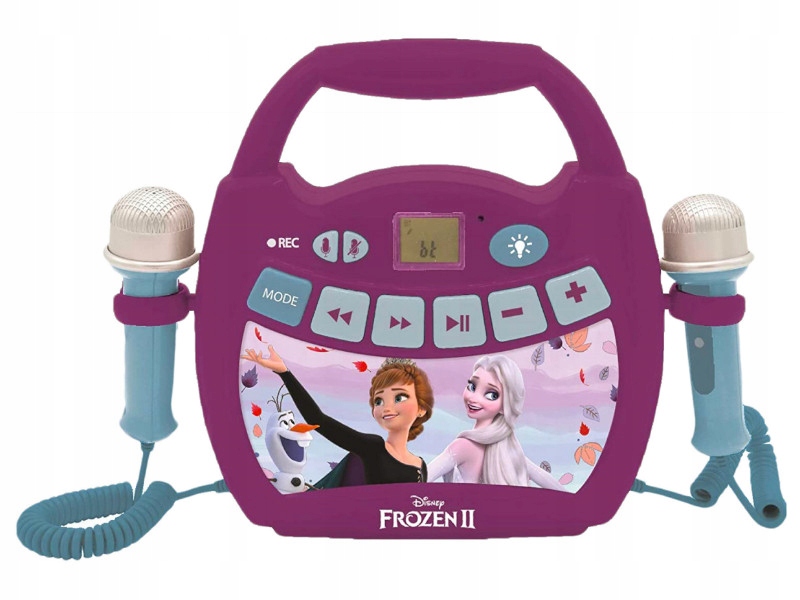Виробник Lexibook представляє мобільного гравця караоке для наймолодших, прикрашених графікою популярних героїв землі льоду. У свою чергу, мікрофони, безумовно, відповідатимуть очікуванням усіх користувачів. Високоякісні матеріали, з яких створений динамік, робить пристрій ідеально відповідати дитячій кімнаті. Крім того, передня панель освітлена різними кольорами.