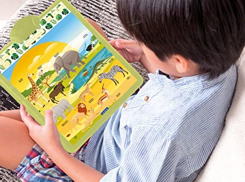 Кумедний англо-французький плакат, призначений для висіння на стіні, є відмінним навчальним посібником для дітей від трьох років. Завдяки кільком ігровим режимам цей двомовний розмовний плакат знайомить дітей із тваринами, які мешкають у савані, їхніми назвами та звуками, які вони видають. На відповідній мові діти також дізнаються про свої особливості та звичаї. Просто натисніть на зображення окремих тварин. Діти можуть перевірити свої набуті навички за допомогою веселої інтерактивної вікторини, у якій вони відповідають на запитання та виконують поставлені завдання, натискаючи кнопку з відповідною твариною. Також доступні веселі мелодії.