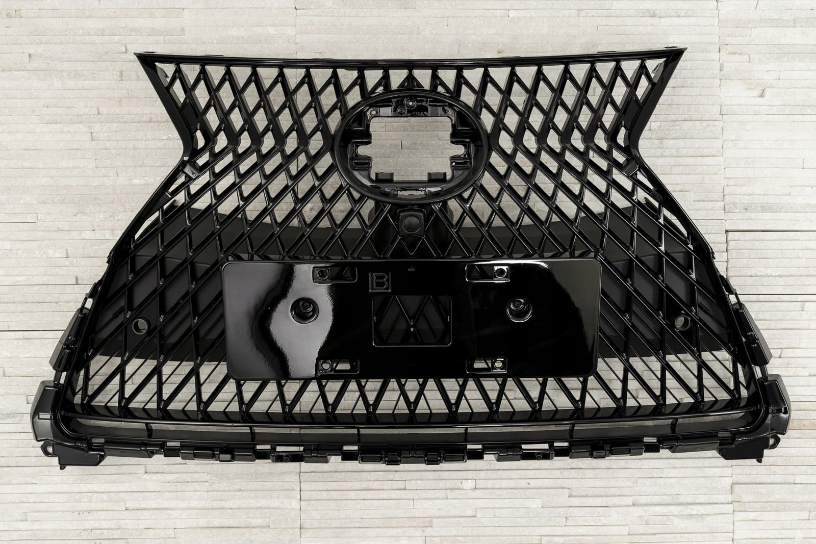 Спеціальна решітка була розроблена, щоб максимізувати сучасний дизайн моделі UX. Елемент вражає своїм спортивним характером, що нагадує зовнішність розкішної моделі Lexus LS500. Похилі поперечини підкреслюють динамічний стиль автомобіля, ідеально поєднуючись із значком LEXUS, що прикрашає передню частину автомобіля, доповнюючи його декоративність.