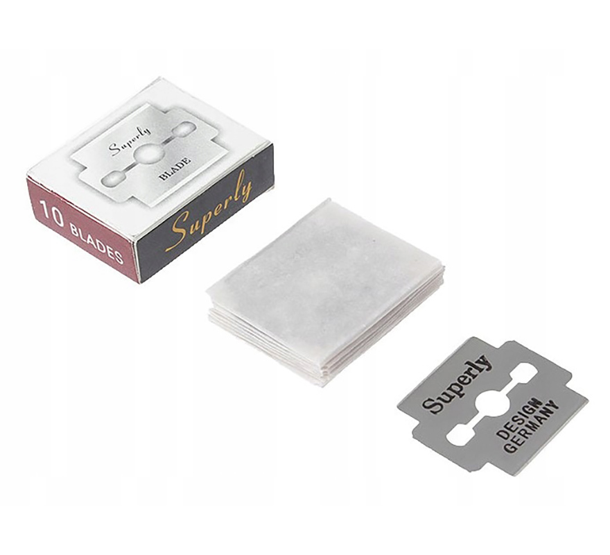 - Кожне лезо бритви упаковується окремо в парафіновий папір.