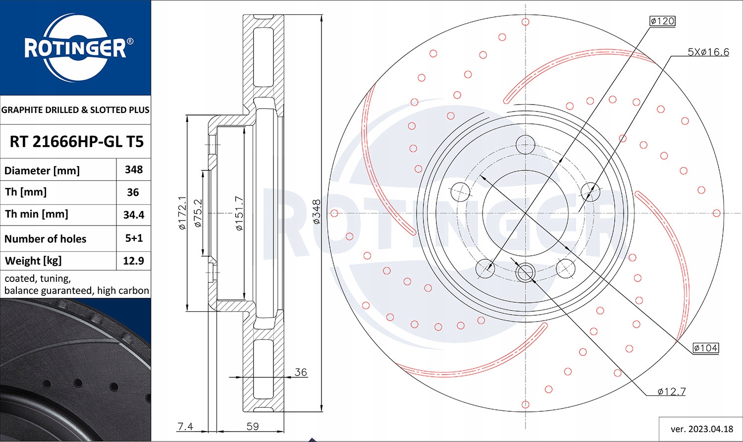 ГАЛЬМІВНИЙ ДИСК ROTINGER З ГРАФІТОВИМ ПОКРИТТЕМ, ВИСОКОЕФЕКТИВНИЙ, СВЕРДЛЕНИЙ ТА ПРОЗІВ ПЛЮС