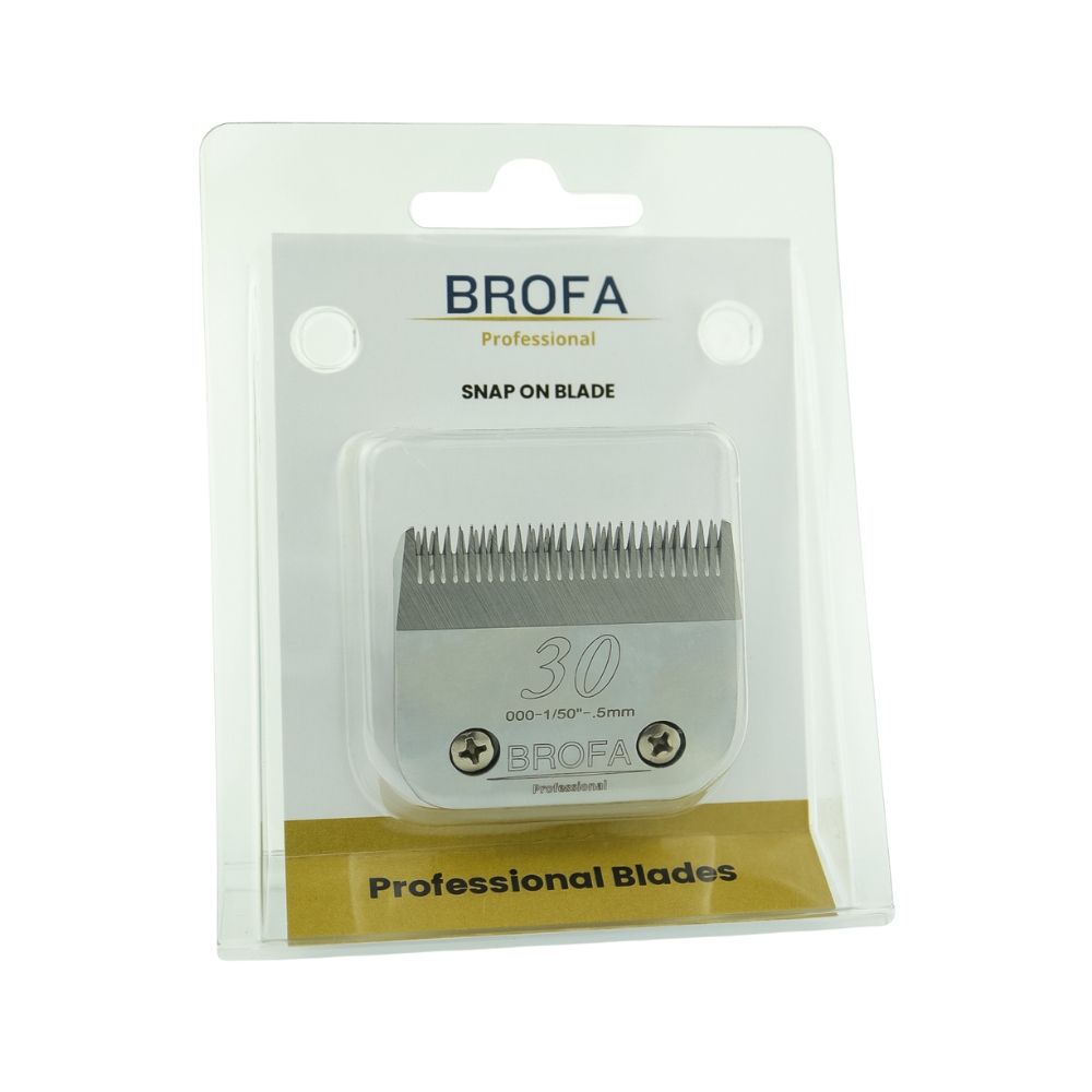 Brofa #30 - це професійне сталеве лезо для догляду, призначене для стрижки собак на довжину 0,5 мм. Це лезо, яке найчастіше обирають для роботи з розпірними насадками, забезпечуючи ідеальну основу для розпірок різної довжини.