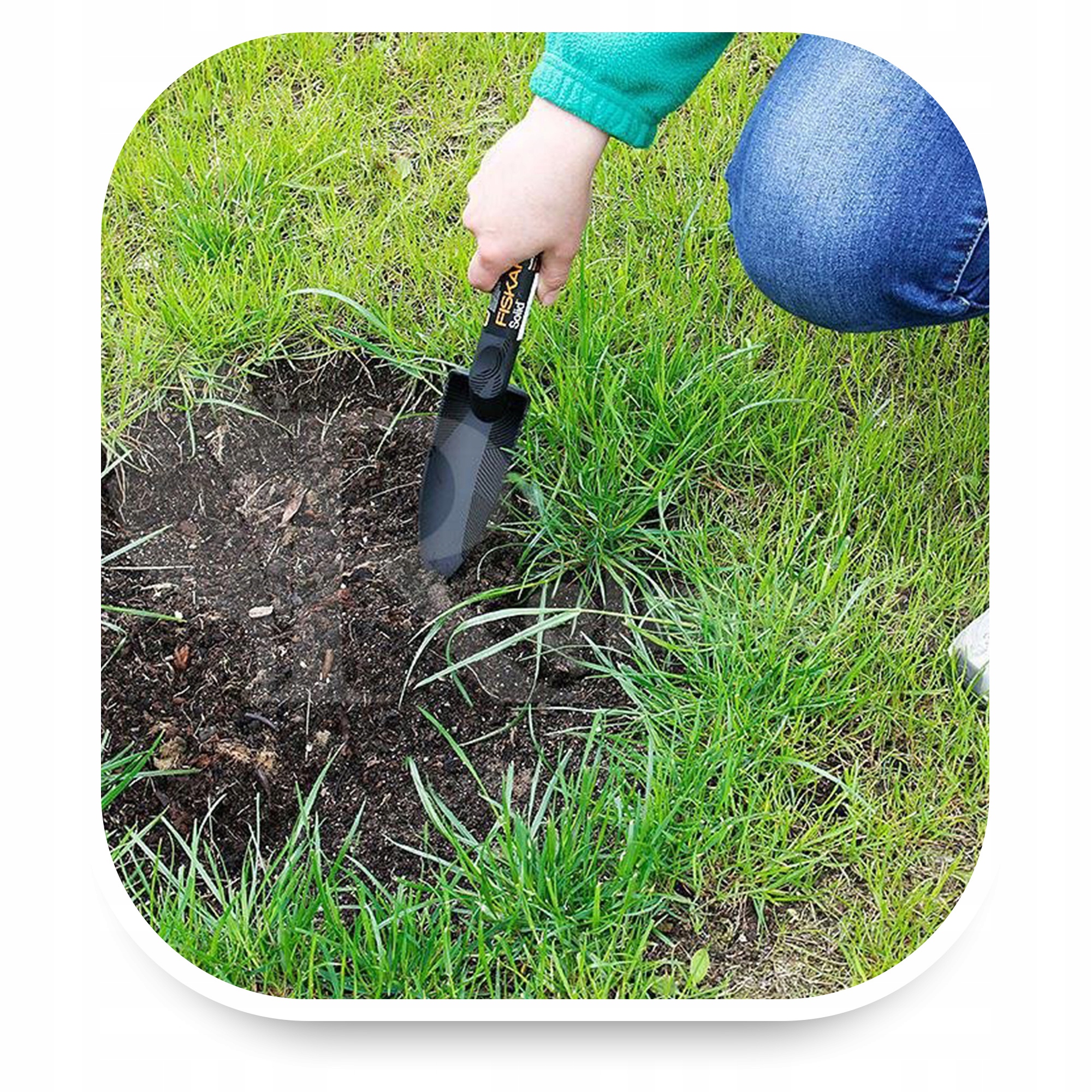 Садова лопата Fiskars — це ергономічний багатофункціональний інструмент для догляду за невеликими рослинами, як горщиковими, так і бордюрними.