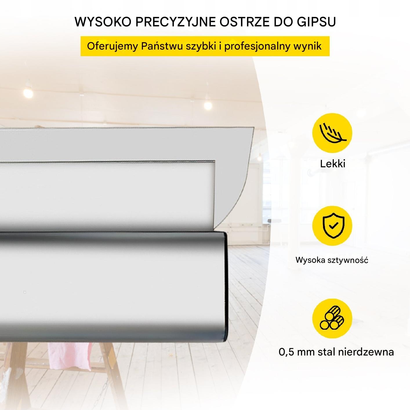 Високоякісна шпаклівка призначені для нанесення та згладжування гіпсового покриття на великих поверхнях. Завдяки гострим і нетилевим лезом, легко отримати прямі лінії, з'єднання, краї та оздоблення.
