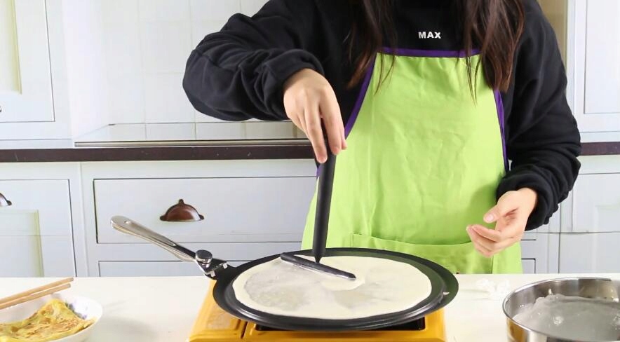 Компактний шпатель складається з трьох елементів : силікон, покритий роликом, рукояткою та штепсельною вилкою. За допомогою тіста з посткорду розкладіть плавно і тонко .
