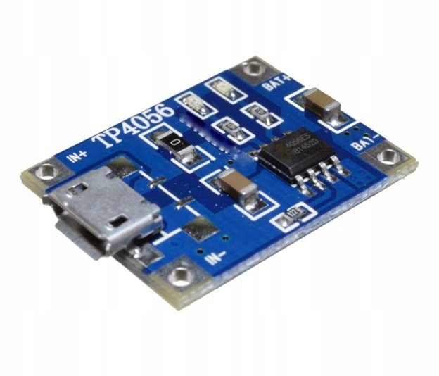 Модуль зарядки акумулятора Li-Ion 18650 на основі системи TP4056ES. Це вдосконалена версія свого попередника TP4056. Модуль має вбудований порт micro USB для зарядки безпосередньо від комп'ютера. Розміри модуля: 25 мм x 19 мм x 5 мм.