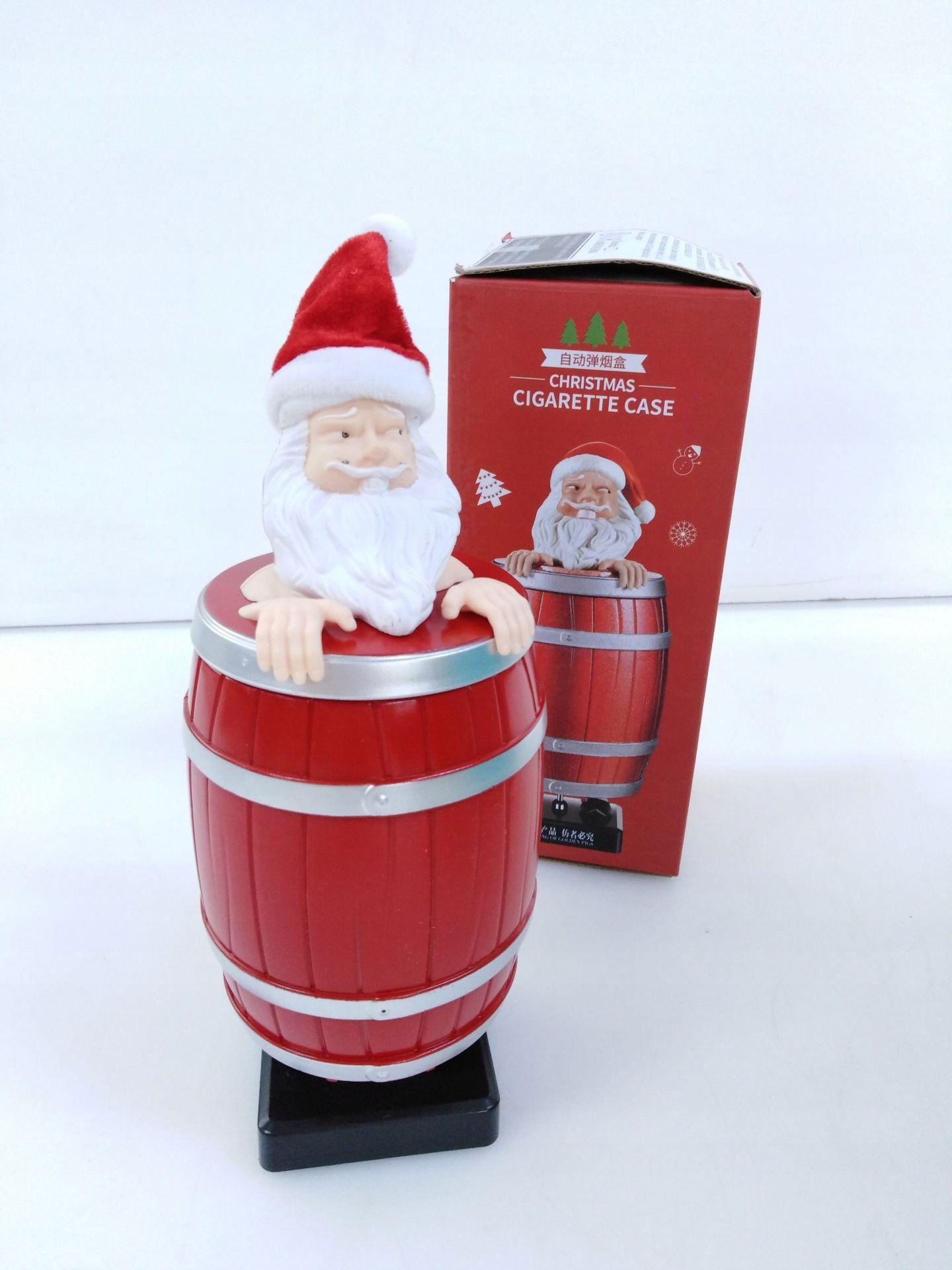 【Креативна фальшива коробка для сигарет】 Кумедний Санта-Клаус у дерев’яній бочці з диспенсером для сигарет, висувна іграшка-подарунок для чоловіків, поп Диспенсер для сигарет -up можна використовувати для зберігання сигарет в приміщенні, в офісі, на конференц-столах, в автомобілях і т.д. Це не тільки коробка для сигарет, але і ідеальна прикраса для вашого будинку.