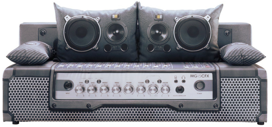 Диван Play Full створено з думкою про молодь. Потреба в оригінальності та свободі у самовираженні в поєднанні з креативністю авторів відображена в моделі Play Full. Диван Аудіо - це неординарний предмет меблів, який зробить інтер'єр унікальним. Тканина оббивки повністю надрукована фотоякістю, що імітує гітарний підсилювач і музичний мікшер. Подушки спинки виглядають як динаміки.