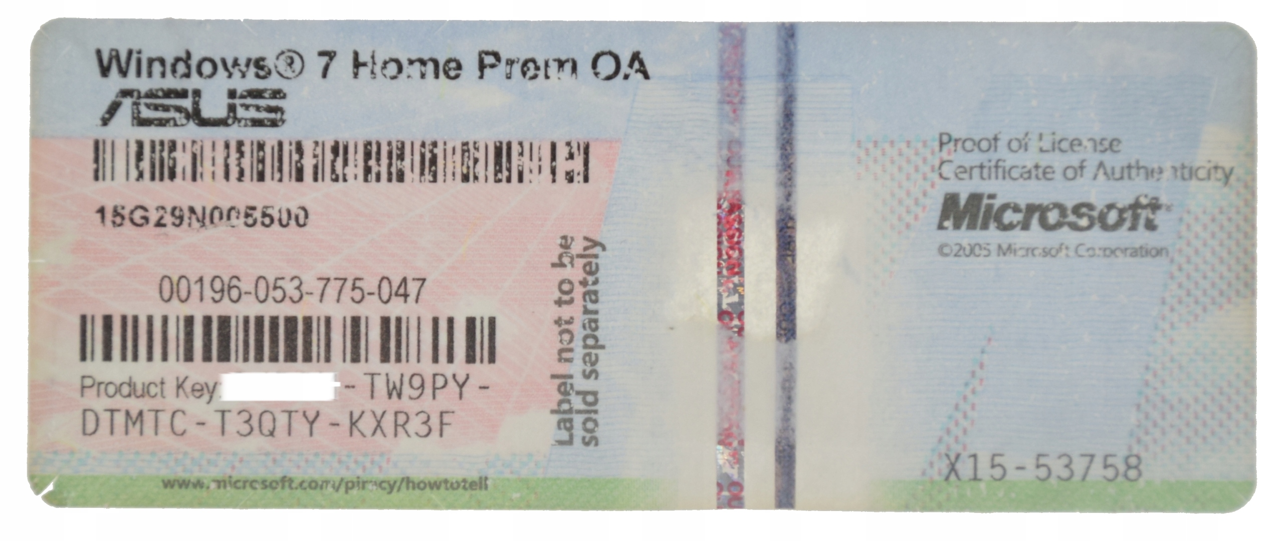 ЛІЦЕНЗІЙНА НАЛІПКА WINDOWS 7 Home Premium OA Asus