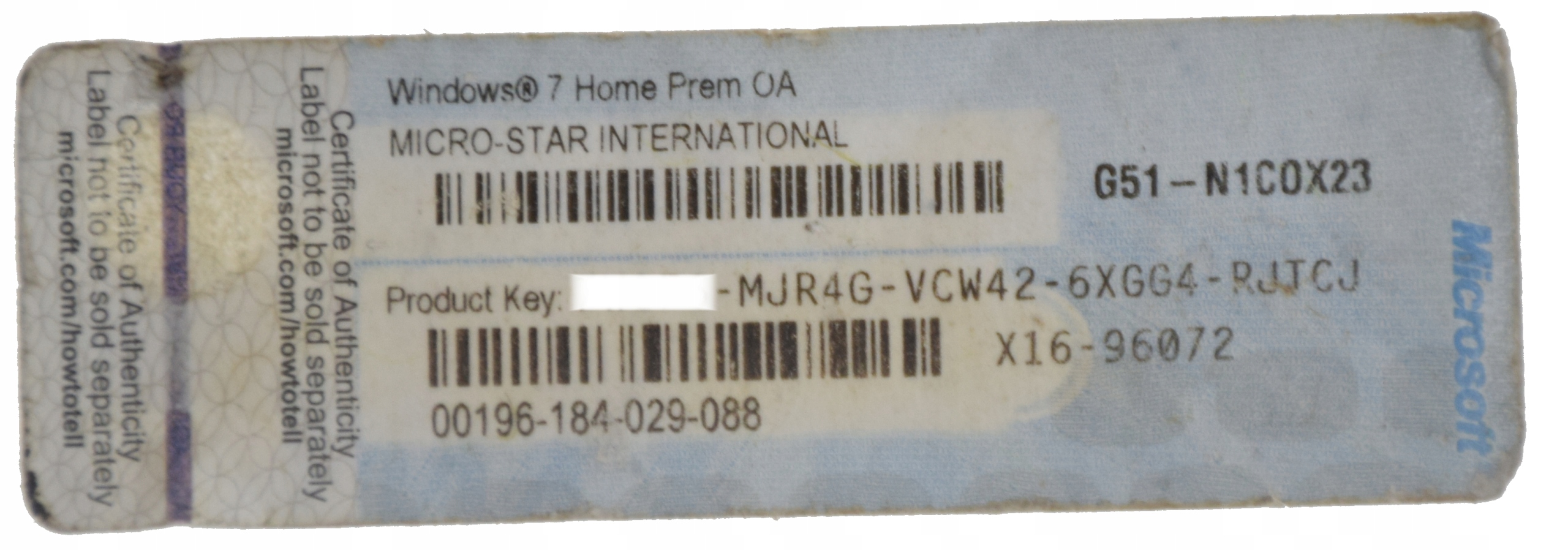 ЛІЦЕНЗІЙНА НАЛІПКА WINDOWS 7 Home Premium OA Micro-Star International MSI