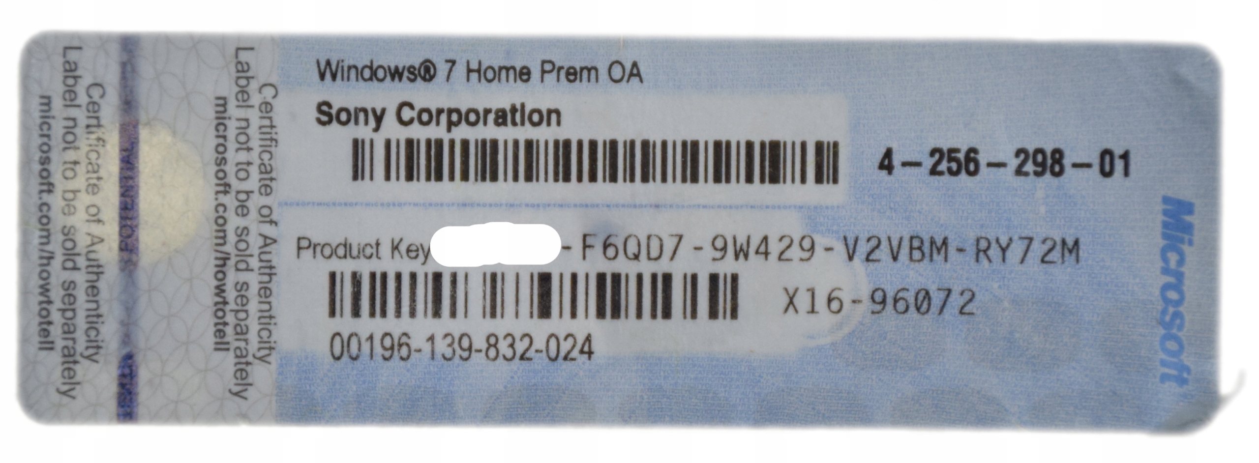 ЛІЦЕНЗІЯ НА НАЛІПКИ WINDOWS 7 SONY HOME PREMIUM