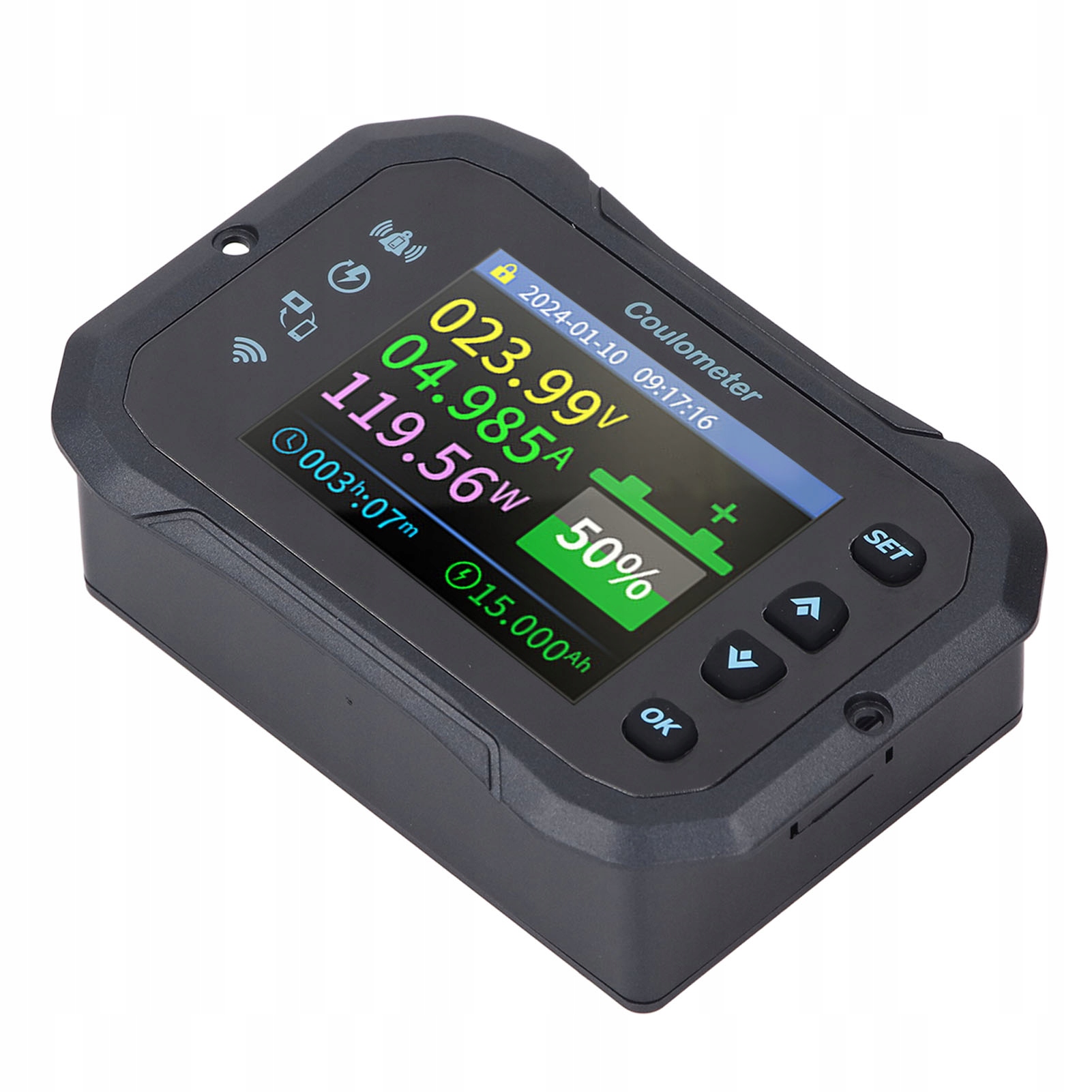 3. [Вимірювання багатьох параметрів] Цей монітор акумулятора може вимірювати напругу, електроенергію, потужність, потужність розряду, години ват, час та інші фізичні параметри. Встановіть параметри, щоб увімкнути такі функції, як захист перенапруги, піднесення, переповнення, непосильне, перегрівання та тимчасово обмежений захист.
