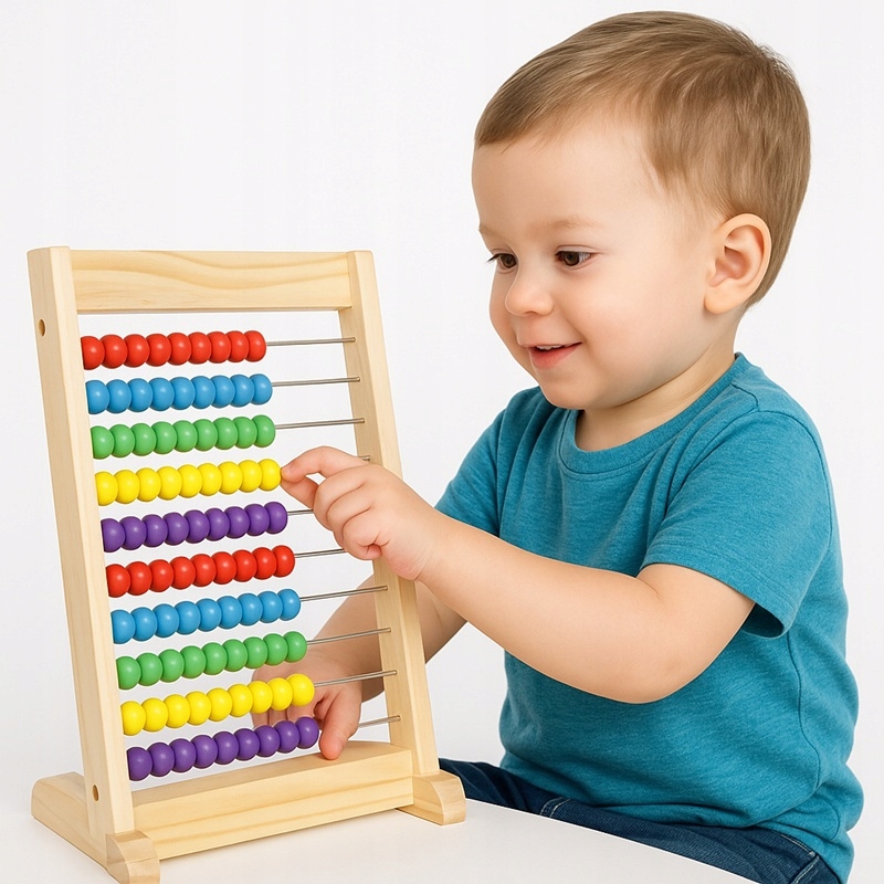 ☑️ Дерев'яна рахівниця з намистинами навчає основних математичних операцій, таких як додавання, віднімання, множення та ділення.