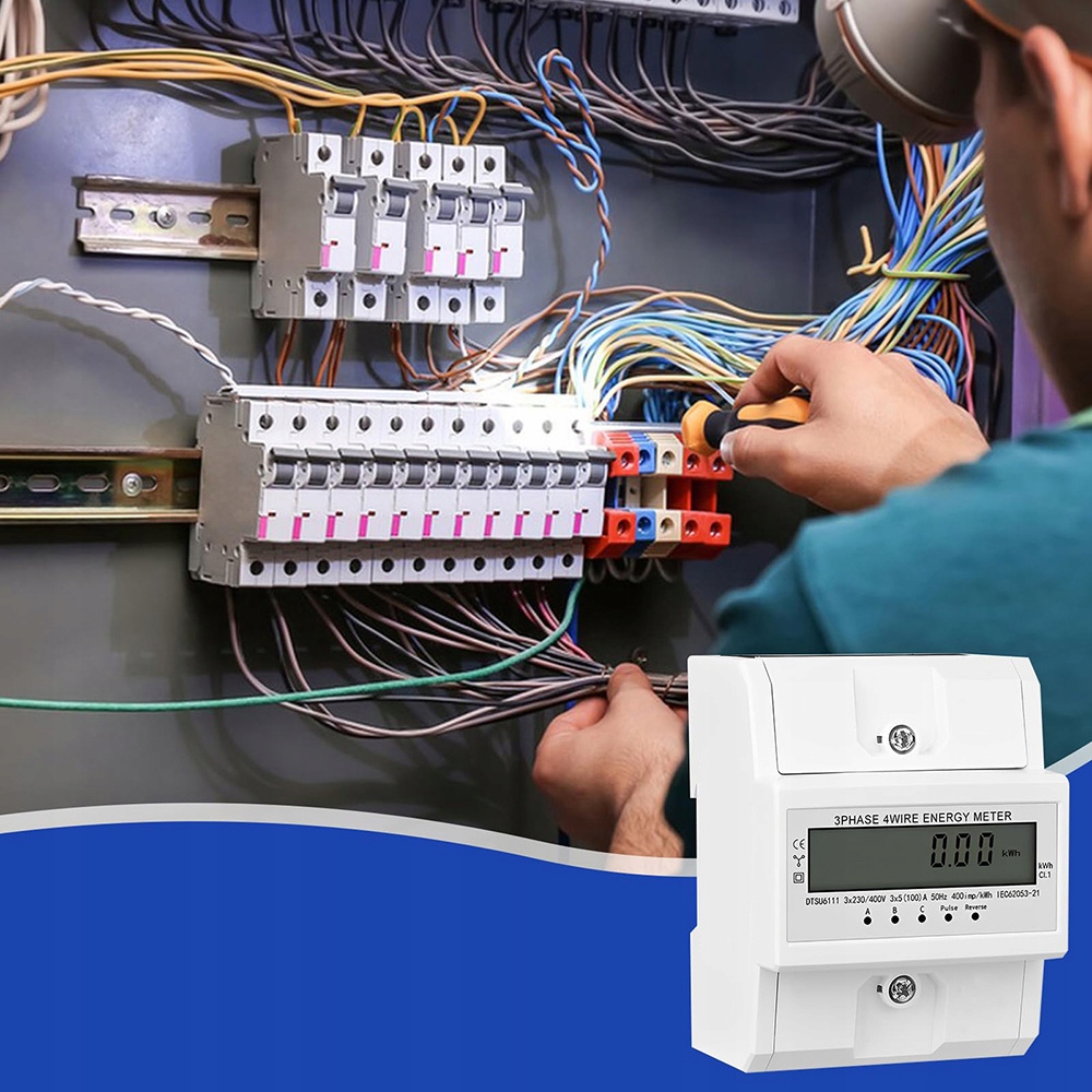 3-фазний електронний лічильник електроенергії з рідкокристалічним дисплеєм 100 А для DIN-рейки, клас 1
