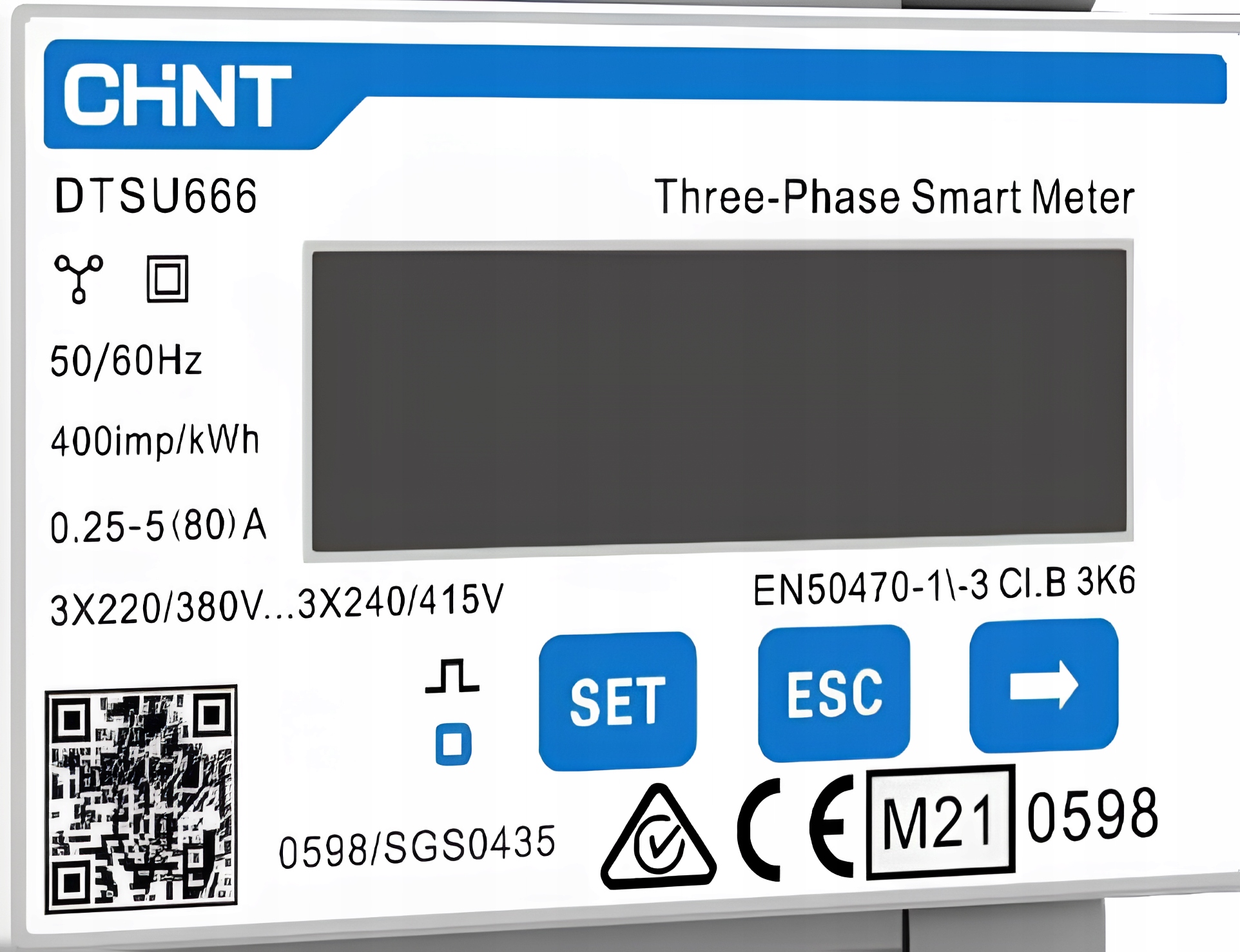 CHINT DTSU666 Трифазний лічильник електроенергії для PV Solar Systems, 3 x 220-380 V 3 x 240-415 V 0,25-5 (80) 50/60 Гц.