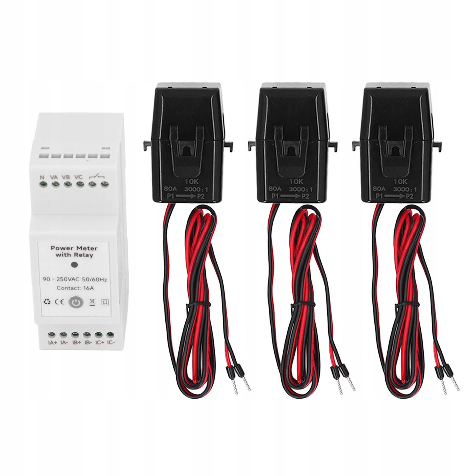 3. Трансформатор струму: Оснащений трьома трансформаторами струму 80 A у формі датчика затискачів CT, цей лічильник енергії струму та напруги забезпечує високу ефективність і практичність у моніторингу енергії.