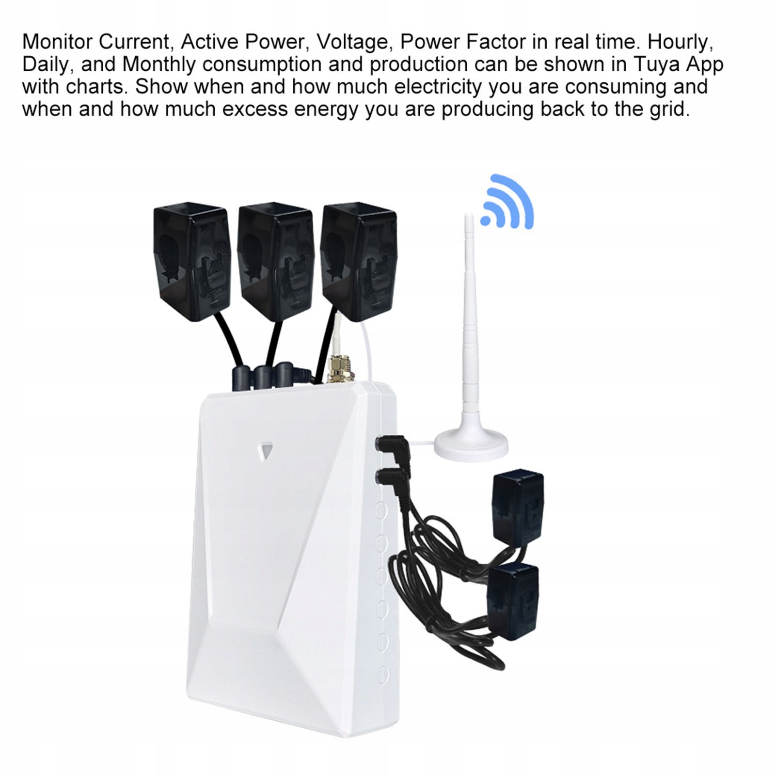 5. Інші особливості: цей інтелектуальний лічильник енергії має просту конструкцію та дозволяє кріпити його на стіну чи рейку. Оснащений зовнішньою антеною 2,4 ГГц. Підтримка з’єднань Tuya, таких як вихід з електромережі та виробництво сонячної енергії.