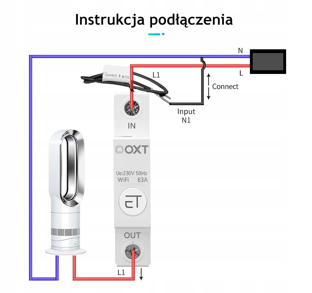 - Вимірювач Wi-Fi контролера OXT 63A 19 мм DIN eWeLink