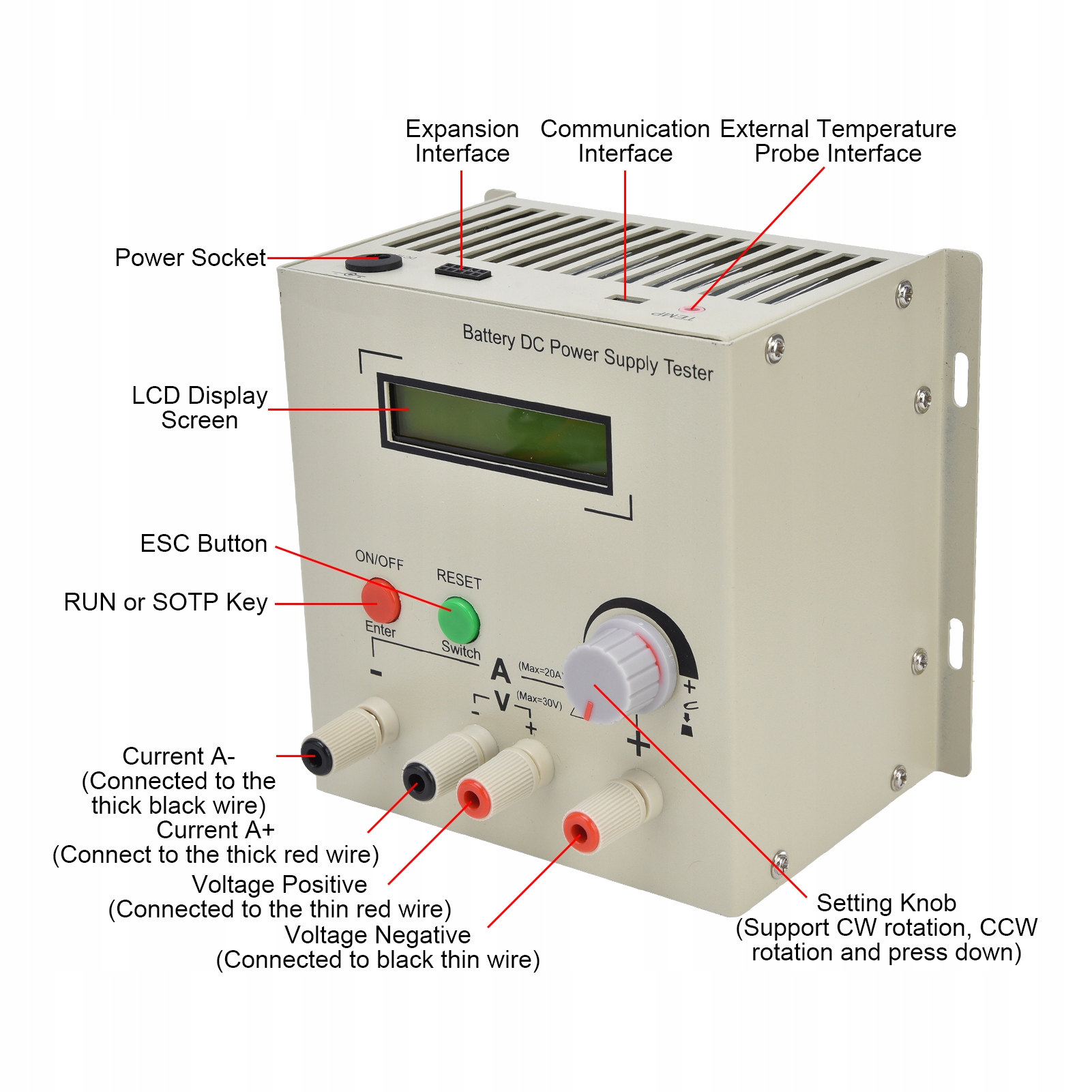 1. Контролер потужності: Він може бути використаний для вимірювання струму, потужності, динамічного тесту, старіння тощо. Практичне застосування: Він також може бути використаний для тестування часу розряду, ємності та внутрішньої стійкості до різних батарей. Чіткий дисплей: РК-дисплей, інтерфейс взаємодії людини-комп'ютерів та реальне 4-провідне вимірювання забезпечують високу точність. Надійна робота: оснащена відключенням, захистом від надмірного струму, захистом від струму тощо, щоб забезпечити безпечнішу роботу. Простий у використанні: Після підключення монітора до комп'ютера за допомогою USB -кабелю монітор дозволяє переглядати історичні криві.