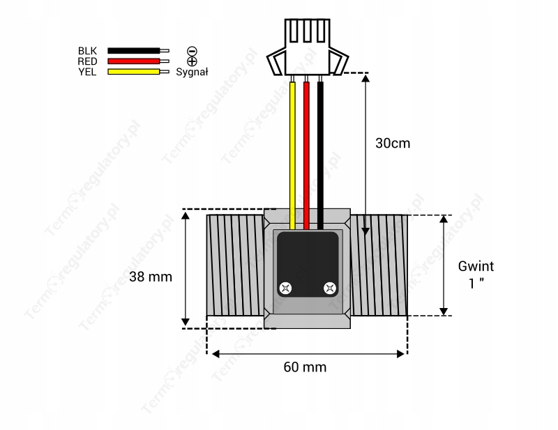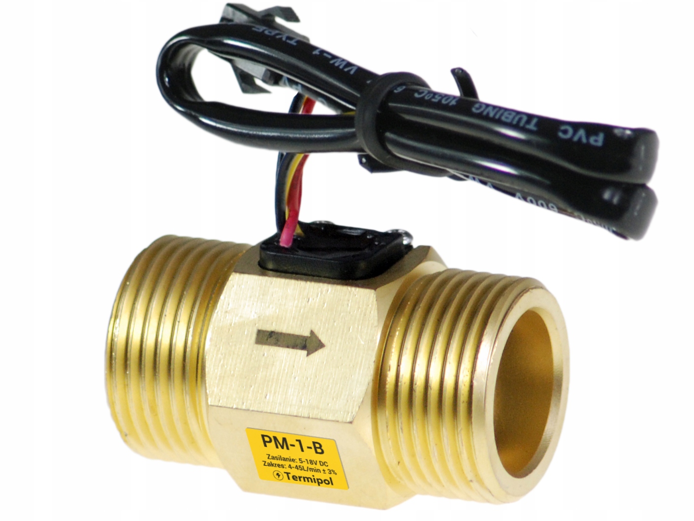 Датчик рідини, призначений для читання потоку води або іншої рідини. Датчик надсилає відповідний імпульсний сигнал. Виготовлений з латунного тіла, водяного ротора та датчика Холла.
